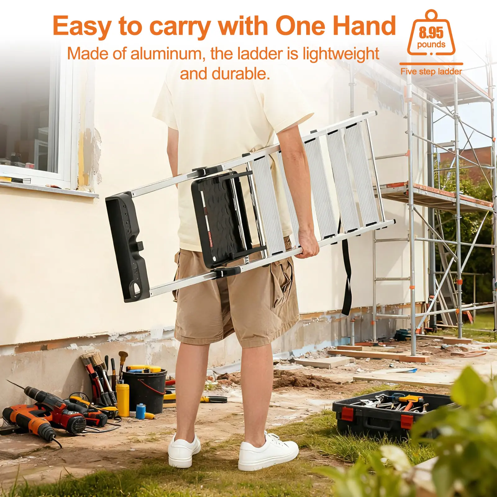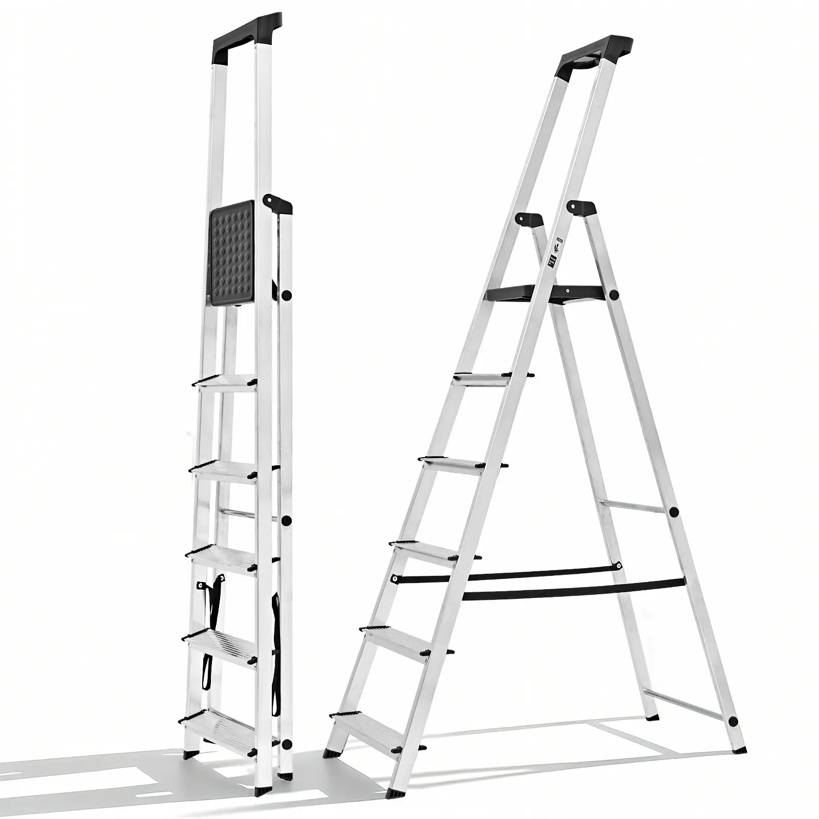 The innovative foldable design makes storage and transportation easy. The lightweight aluminum ladder folds flat, sliding into tight spaces like closets or car trunks, saving valuable space. 🛠️
