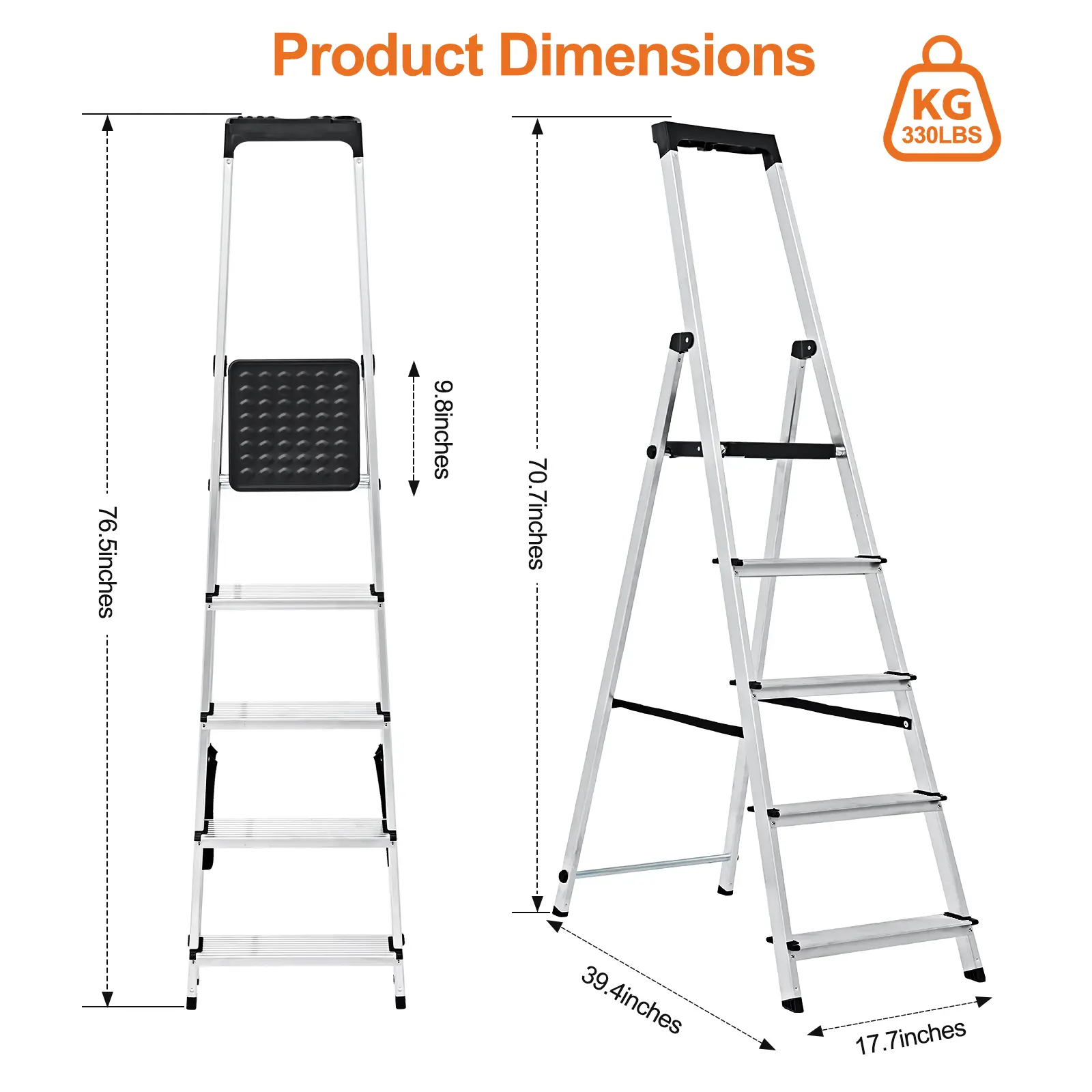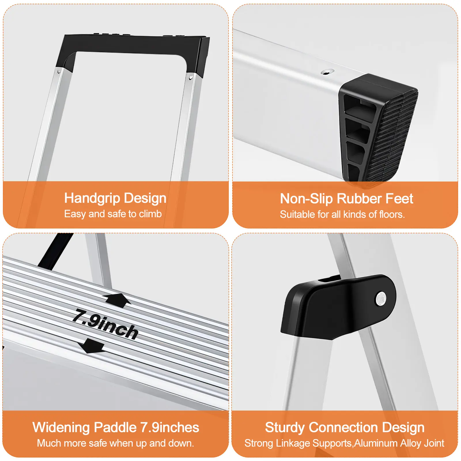 Our aluminum ladder boasts a robust, industrial-grade design ensuring superior stability. The reinforced step ladder construction with wide flaring legs provides a secure, wobble-free footing. You gain complete confidence with every step.