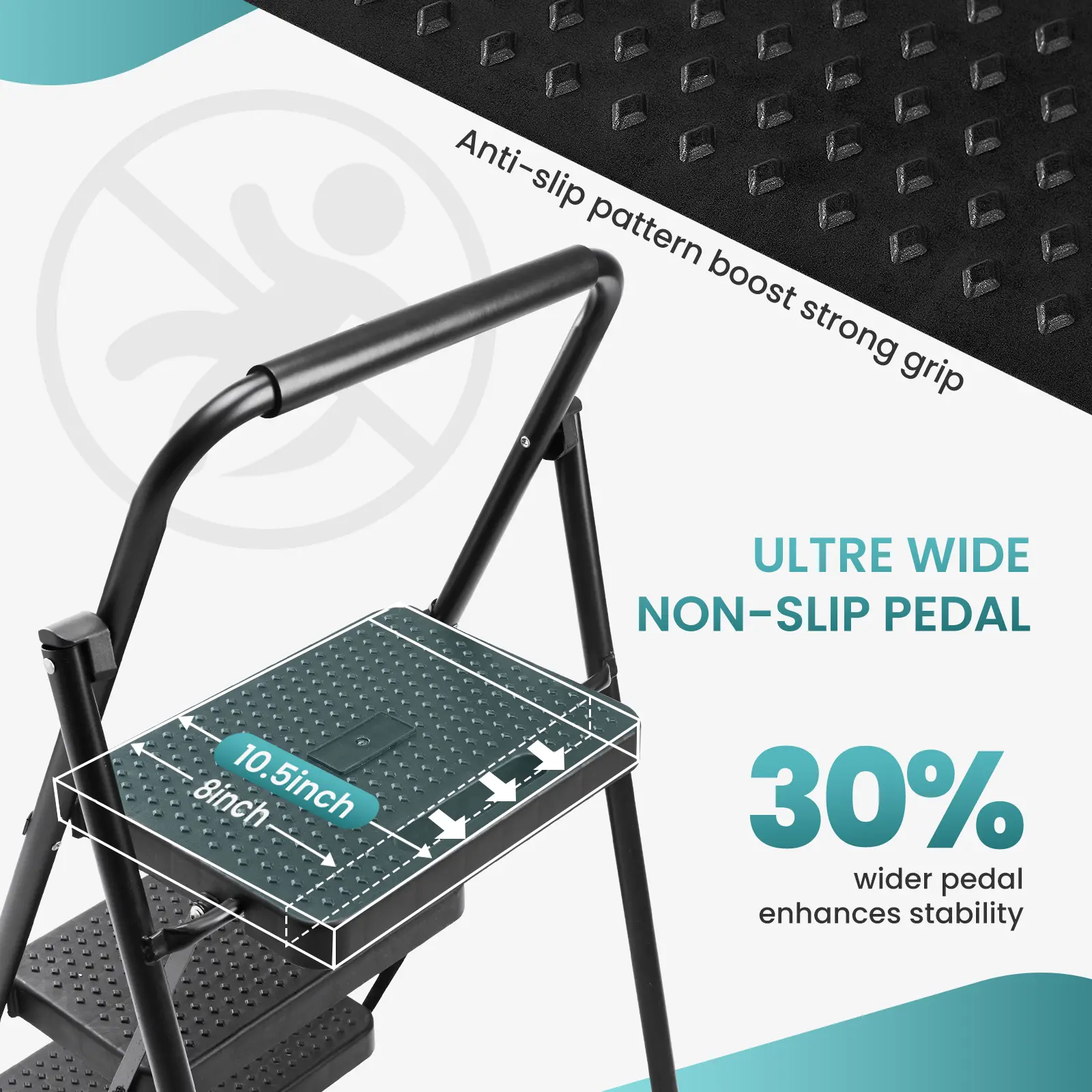 ·【Safe and Secure】:The wide steps can enable standing balance and the non-slip foot mats can ensure safe footing even when used on smooth surfaces.
