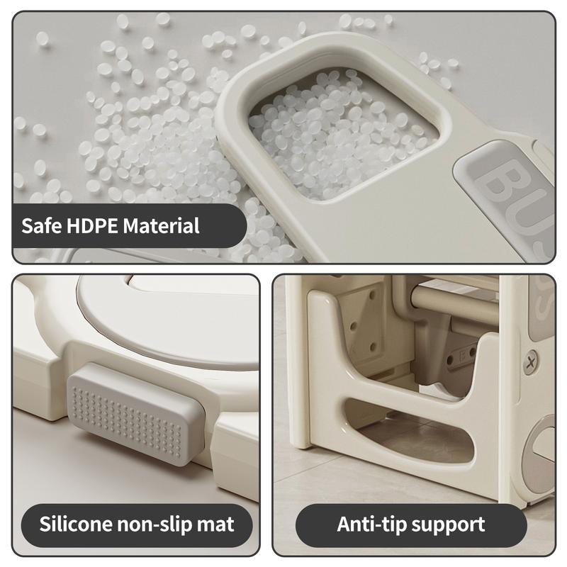 ·Durable and Easy to Maintain: Made from high-quality, durable materials that ensure long-lasting use. This step stool requires quick, tool-free assembly, so parents can set it up effortlessly. Smooth, easy-to-clean surfaces allow for convenient hygiene maintenance, making it ideal for everyday use in busy households.