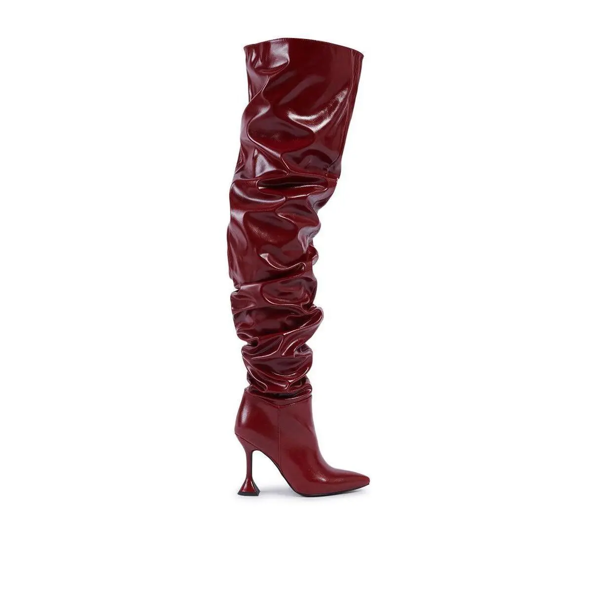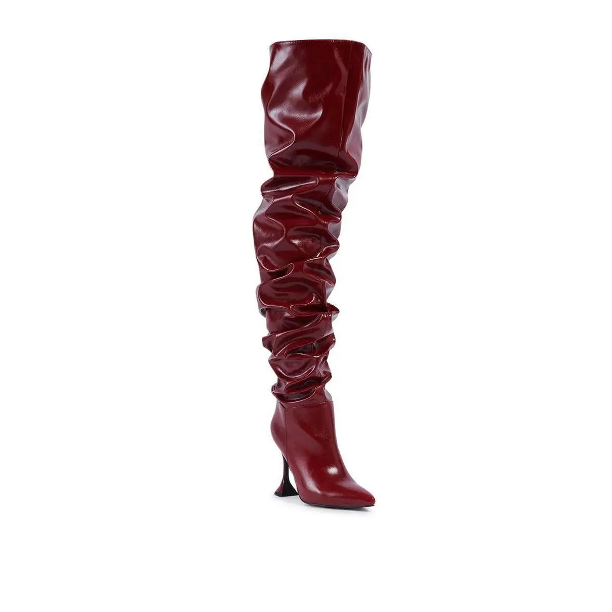 These boots are everything! True to size- 8.5. The heel was sturdy ( I haven’t worn them out), the thigh high part is thick thigh friendly and the ankle zipper helps to insert your foot easier. The boot is long and does have a lot of material but that’s what gives the extra pizazz.