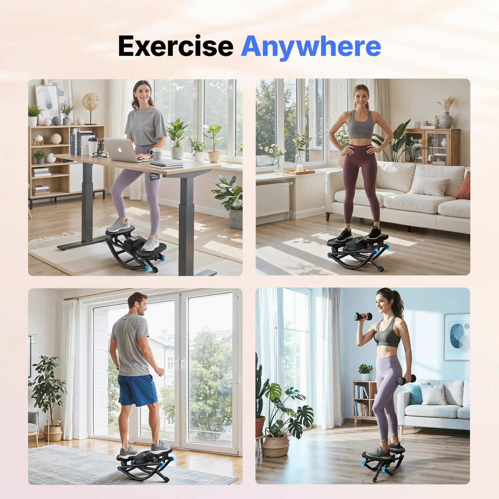 Elevate your home fitness routine with our compact, dual-motion stepper that combines horizontal gliding with vertical stepping — designed to deliver a full-body workout in minimal space.