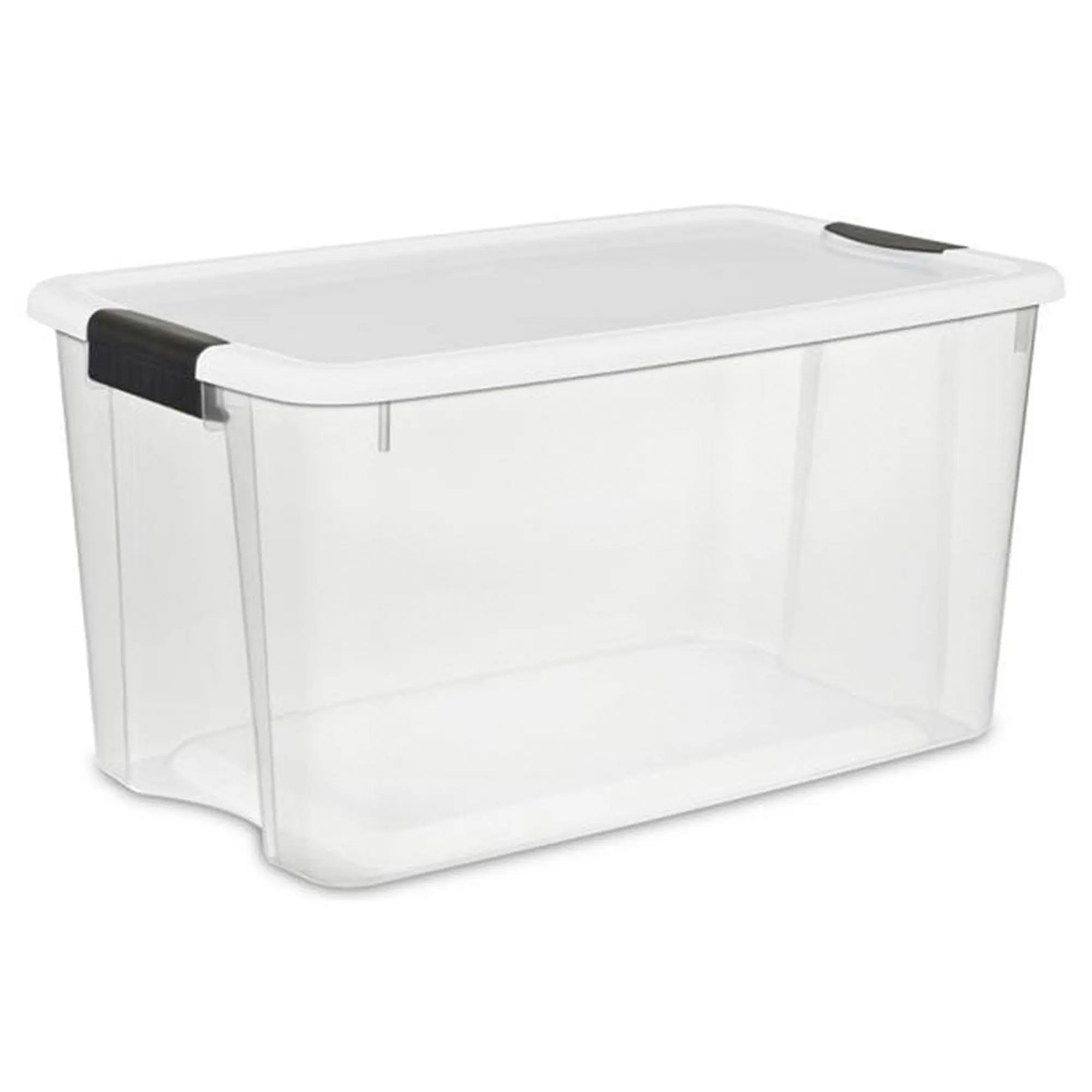 Bring total organization to your home storage system with the Sterilite 106-Quart Latch Lid Tote, 4 Pack, and 70-Quart Latch Lid Tote, 4 Pack.Whether you need to pack away camping gear, blankets, or other bulky items, keep your home neat and organized with the help of these storage totes. The 106-quart containers can be opened with one hand and the second latch acts as a handy hinge. The clear base is great for quickly viewing contents and the recessed lid makes it great for stacking.Going on a camping trip? These 70-quart storage boxes keep all your supplies neatly organized making them easy to carry to your campsite and allowing them to be easily stored when you return home. The see-through base allows contents to be easily identified, and multiple bases are able to stack on top of each other. This latch storage box is ideal for storing larger items in the basement, garage, and attic.Clear some clutter from your life and tuck away your belongings in the 106-Quart Latch Lid Tote, 4 Pack, and 70-Quart Latch Lid Tote, 4 Pack by Sterilite today.