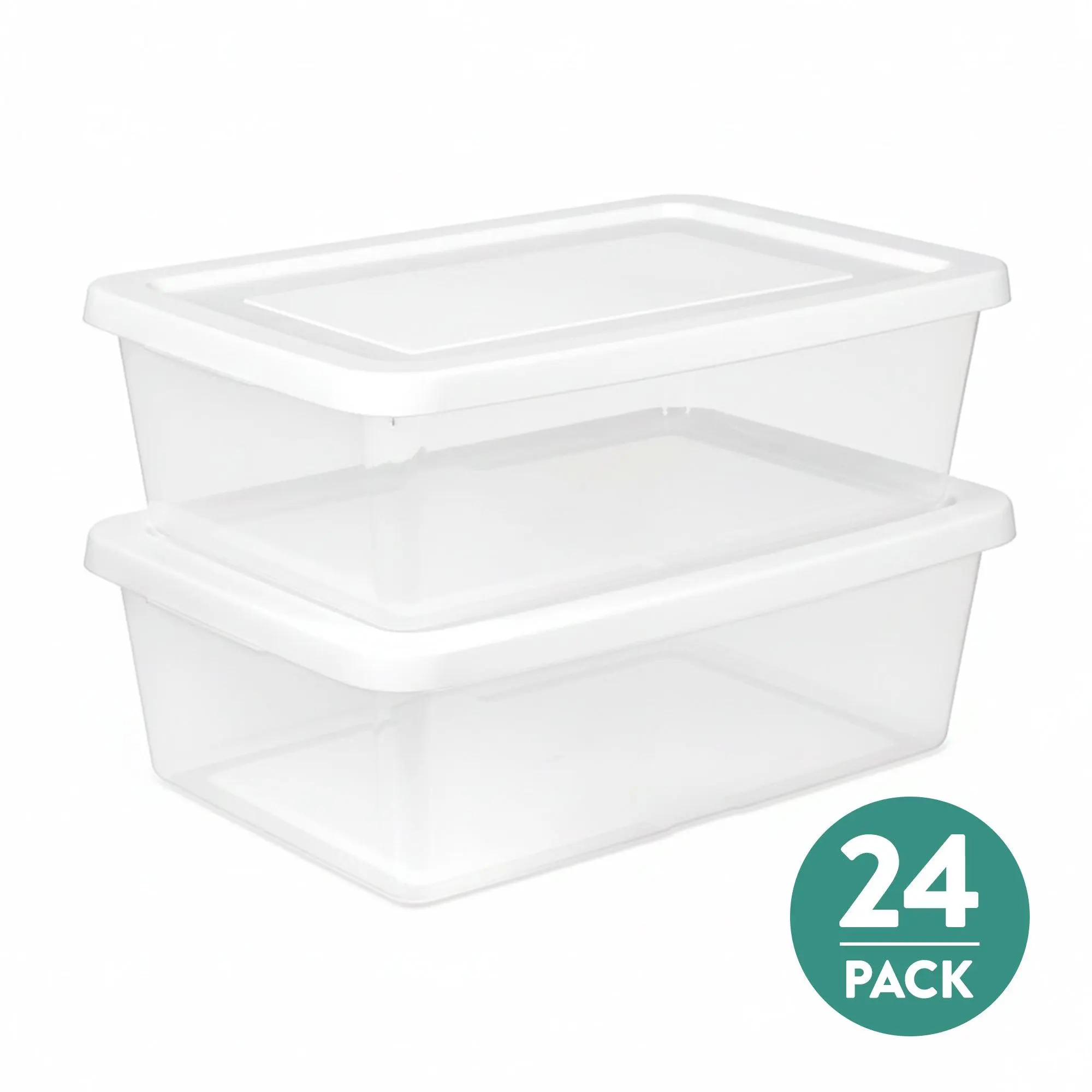 Transform your home organization with the Sterilite 12 Quart Clear Storage Box, the perfect solution for keeping your living spaces neat and clutter-free. Whether you're storing shoes, accessories, crafts, or small household items, this versatile storage box provides a simple yet efficient way to bring order to your home. The clear base allows for easy identification of contents at a glance, eliminating the need to dig through boxes to find what you're looking for. The opaque lid snaps securely onto the base, ensuring your items stay contained and protected. Plus, the lid features a convenient grip for easy lifting.Designed with space efficiency in mind, the recessed lid allows multiple boxes of the same size to stack securely on top of one another, maximizing your vertical storage space. This makes it ideal for closet shelving, and it fits perfectly on 16-inch wire closet shelves. When storing, be mindful not to overload the boxes or stack them too high; placing the heaviest box at the bottom will help maintain balance and stability.Proudly made in the USA, this storage box is BPA-free and phthalate-free, ensuring a safe and reliable storage solution for your home. The overall dimensions of the Sterilite 12 Quart Storage Box are 16 1/2" L x 11 1/4" W x 5 3/8" H, making it compact enough to fit neatly in closets, cabinets, and other storage spaces. Bring order to your home today with the Sterilite 12 Quart Clear Storage Box!