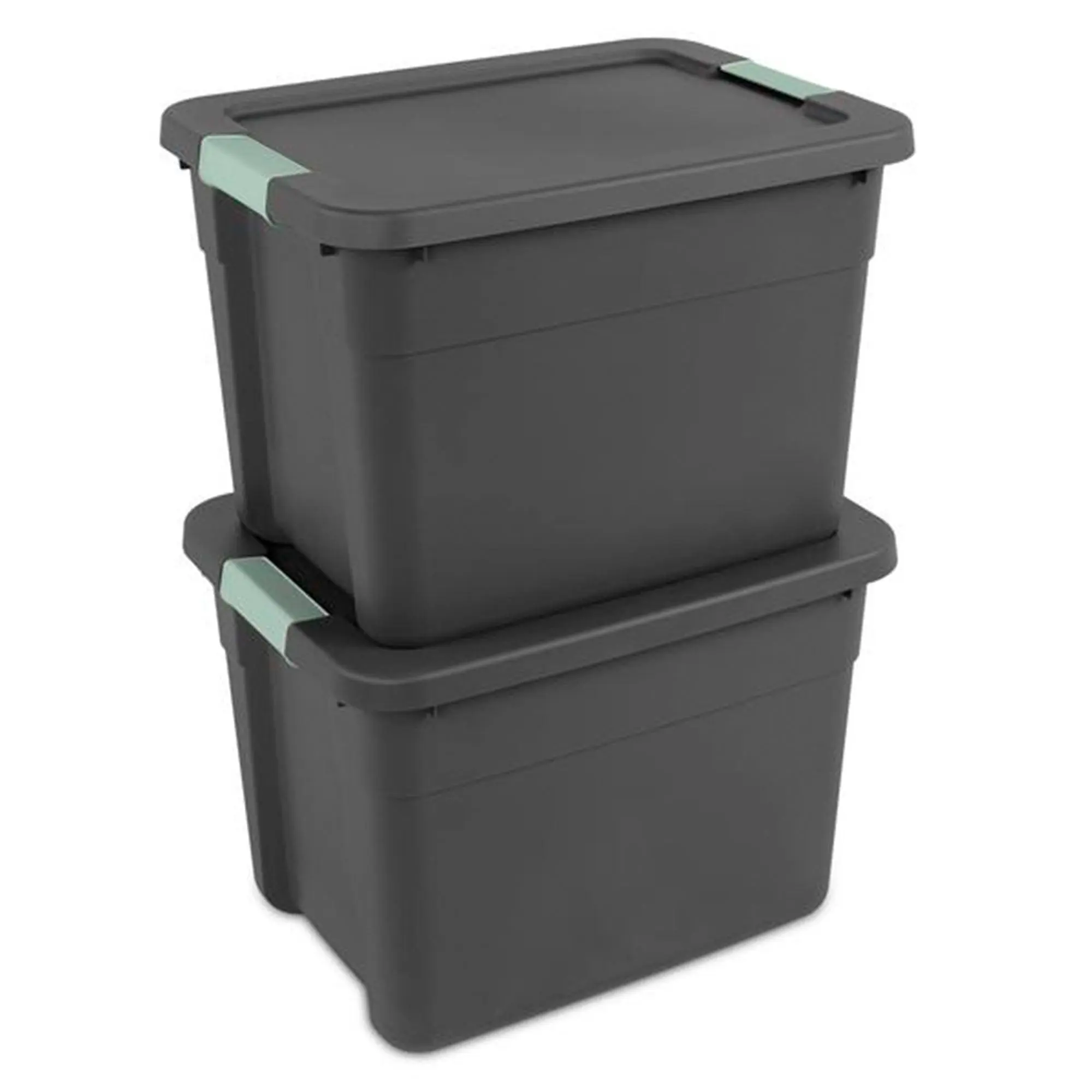 Compact, stackable storage solutions are essential for seasonal goods, extra clothes, and gardening supplies. Providing plenty of space for your holdings of decorations, seasonal items, and shoes, the Sterilite Latching Storage Totes allow you to stow away all your possessions with ease.With 12-gallon capacities, the organizer containers keep your favorite spaces, rooms, or offices organized by providing maximum versatility. The totes are the perfect sizes for linens, towels, household tools, and supplies, while their opaque bases allow contents to be out of sight for maximum protection. Durable constructions make these ideal solutions for storage needs in garages, basements, or attics. Equipped with indexed lids, multiple totes can be stacked neatly on top of each other for efficient use of vertical storage space.Built with contoured end panels and robust latches, these storage bins feature secure attachments of the lids while offering extra security to ensure the contents inside stay in place. The handles on each side allow you to move the totes from place to place conveniently. Measuring 19.5 inches long, 15.38 inches wide, and 13.88 inches tall, the storage possibilities become endless.Whether you need to organize your home bedrooms, offices, or mudrooms, these 12-gallon containers will be the ideal solutions you've been looking for. Declutter the countertops around you with the Latching Storage Totes from Sterilite.
