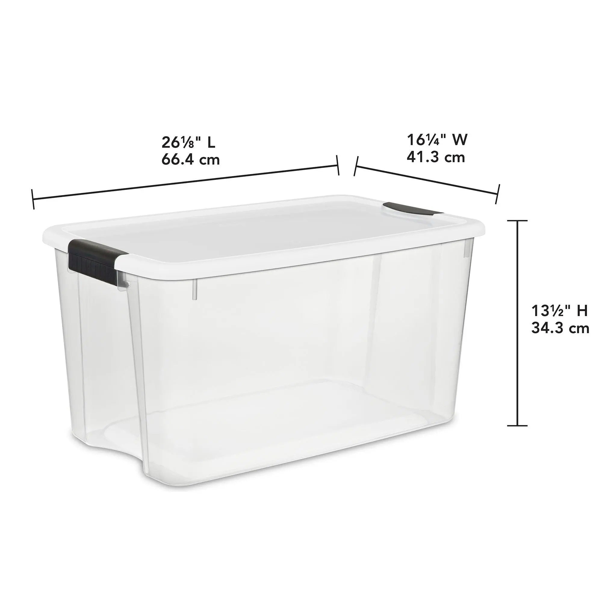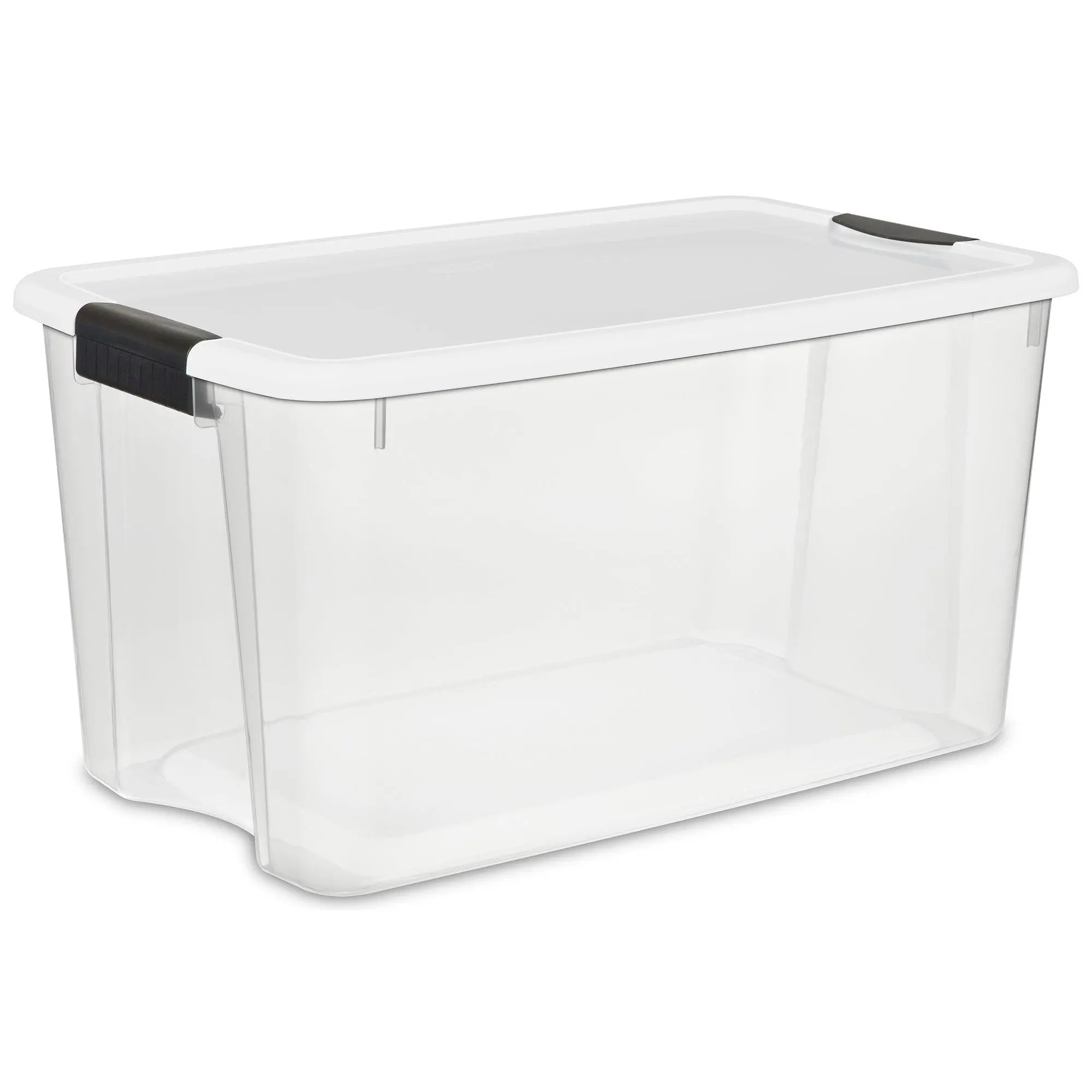 Clear some clutter and enjoy a more organized home while putting away large bulky items in the Plastic Stackable Storage Bins from Sterilite. With a spacious 70-quart capacity, the storage opportunities for these totes are endless. These storage containers are crafted from durable plastic materials, making them ideal for storing heavier items such as sporting workout equipment, tools, and outdoor gear. With a clear base, you'll efficiently find exactly what you're looking for without having to open them all up. Equipped with robust latches on the included lids to offer extra security, you can ensure your personal belongings remain safe in each box, while the textured surface provides a secure grip for easy carry. These stackable container baskets with a deep indexed lid design maximize your storage space in your garage, attic, shed, or wherever else you need to place them. Whether you're needing to clean up the shoes in your closet, organize supplies from your home office, or condense the kids' toys from the playroom, these Multipurpose 70-Quart Stackable Storage Bins from Sterilite are sure to do the trick.