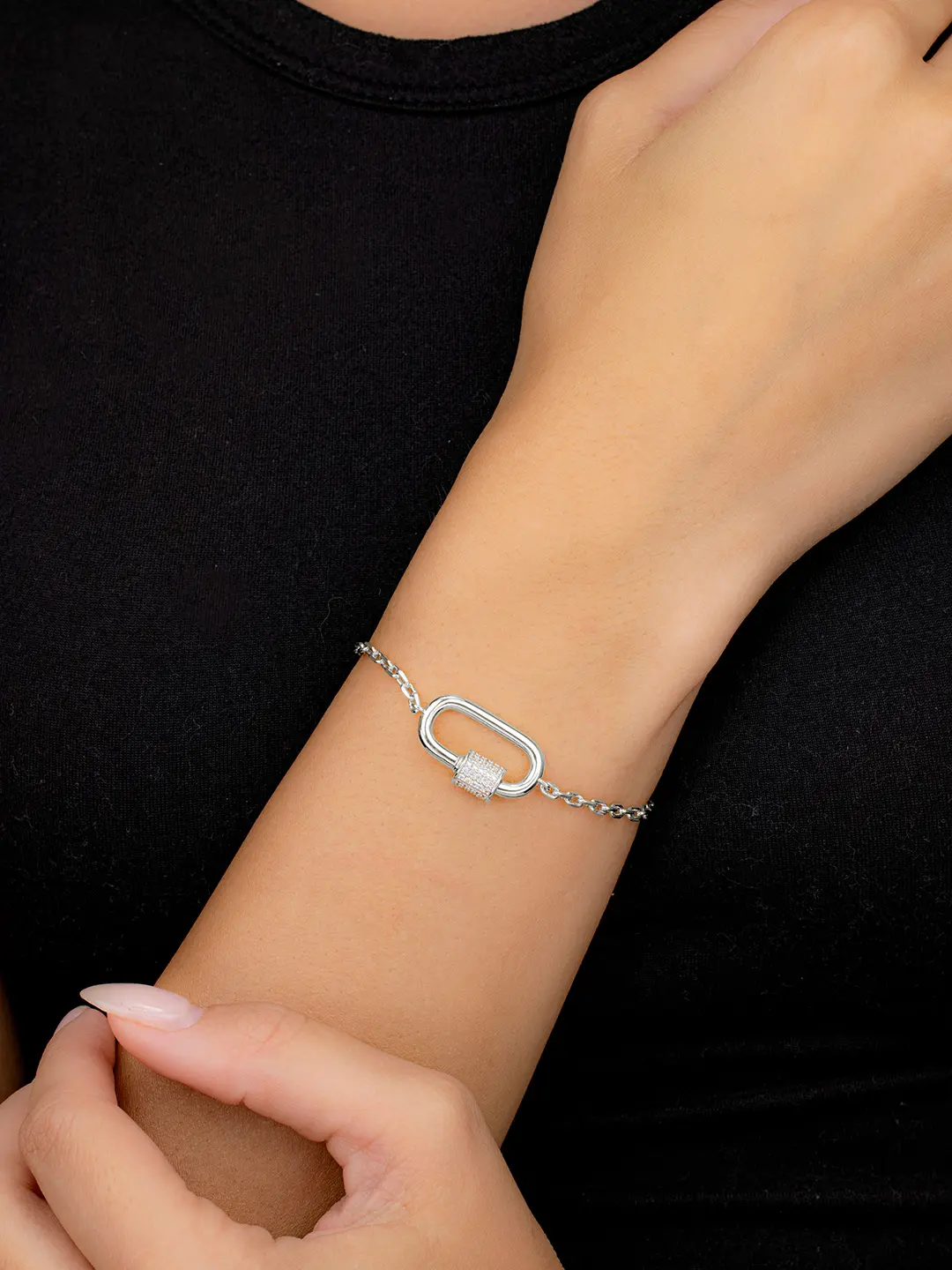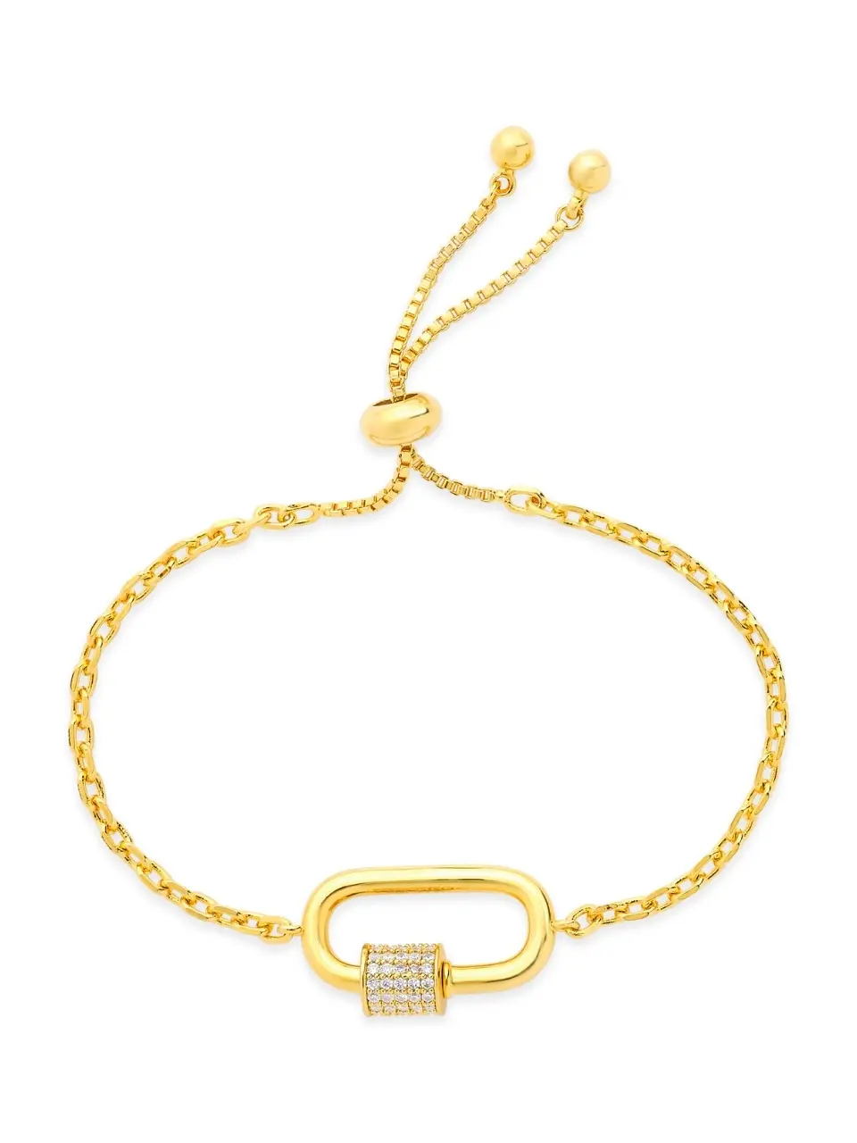 Love all the carabiner style necklaces and bracelets. The chain on this is so dainty and the pop of czs is gorg!
