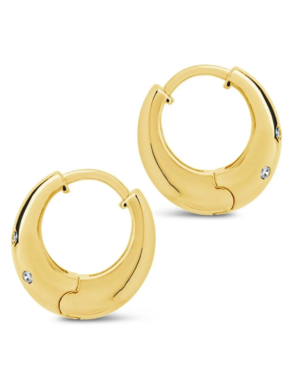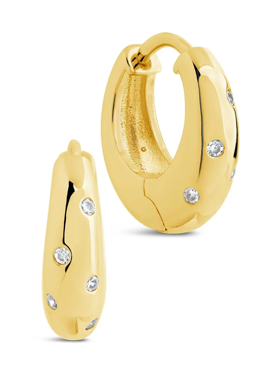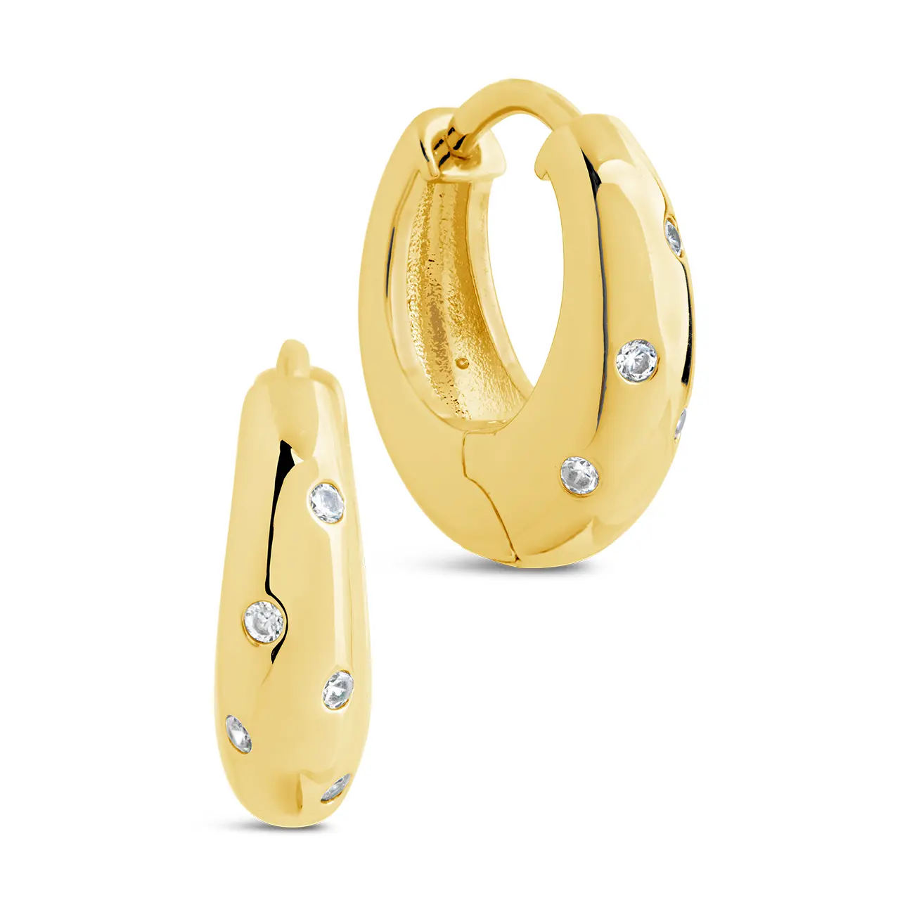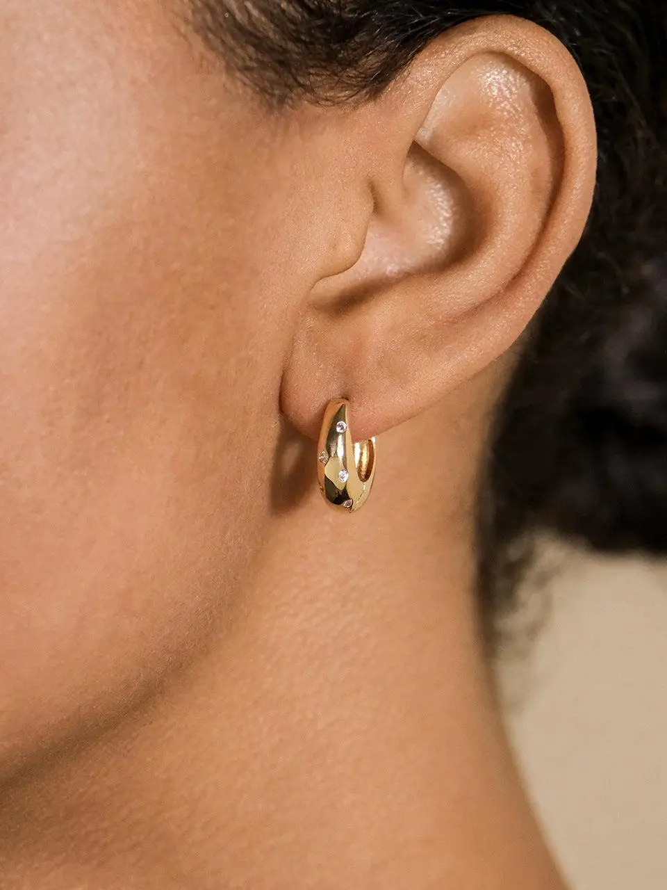 A chunky mini hoop that still feels pared-back. These bold little beauties are lined with delicate CZs for just the right flash of sparkle. Equal parts casual and polished, they’re perfect for a solo statement or stacked with huggies for an unexpected twist.