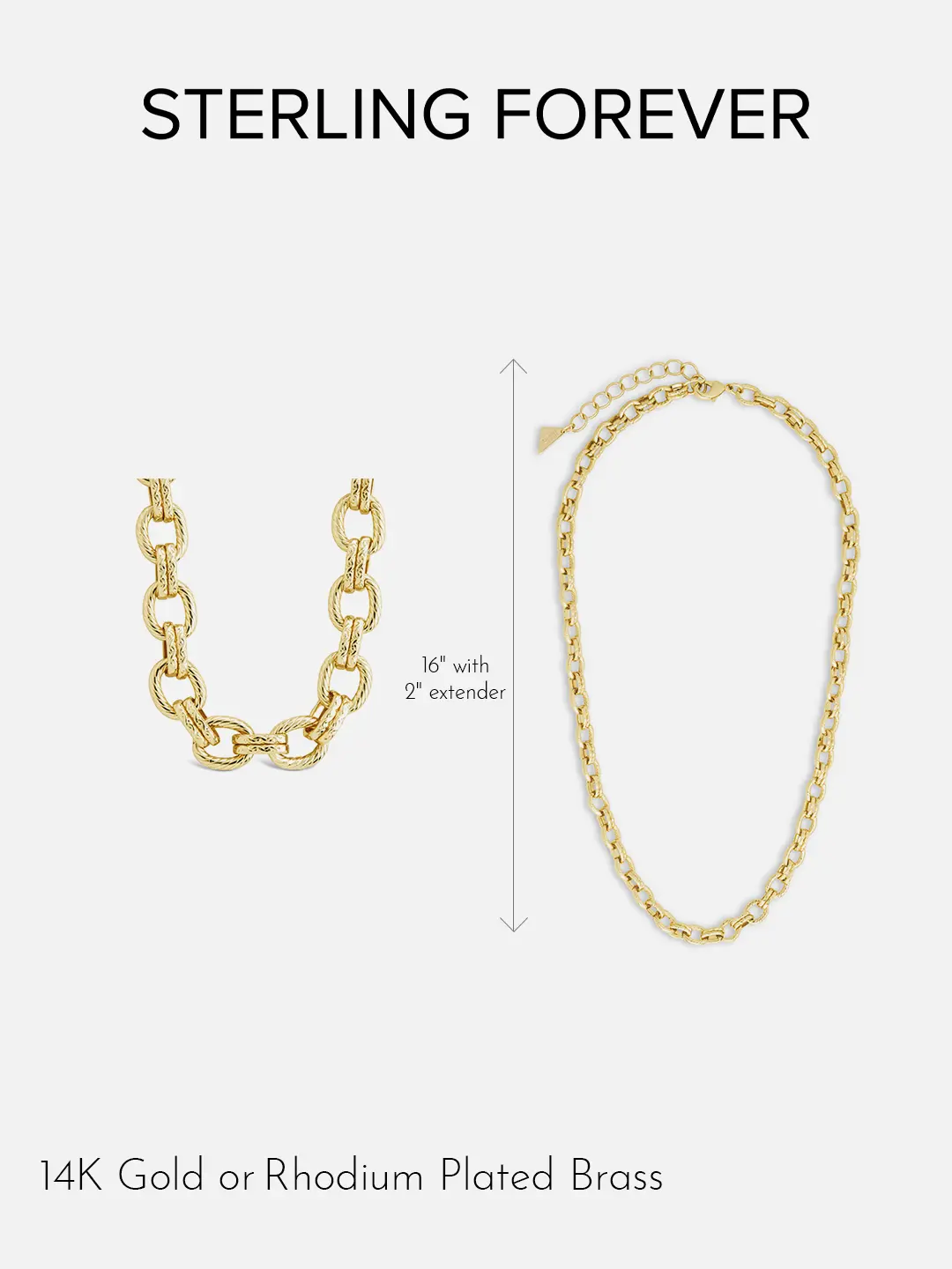 ·16 in. necklace, 2 in. extender with lobster clasp, 7.75 rope texture chain links
