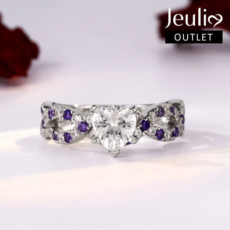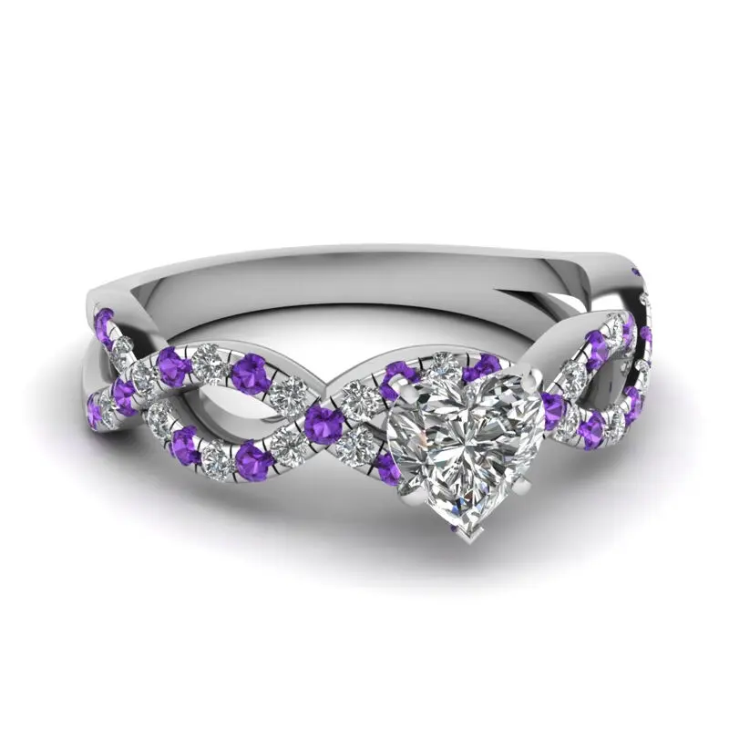 Celebrate your love with this exquisite enagegement ring. Beautifully crafted in sterling silver, this entrancing design features a shimmering heart-cut stone at the center while purple stones and shimmering white stones alternately set on twisted shank. Seal your vows and celebrate your commitment with this stunning engagement ring.