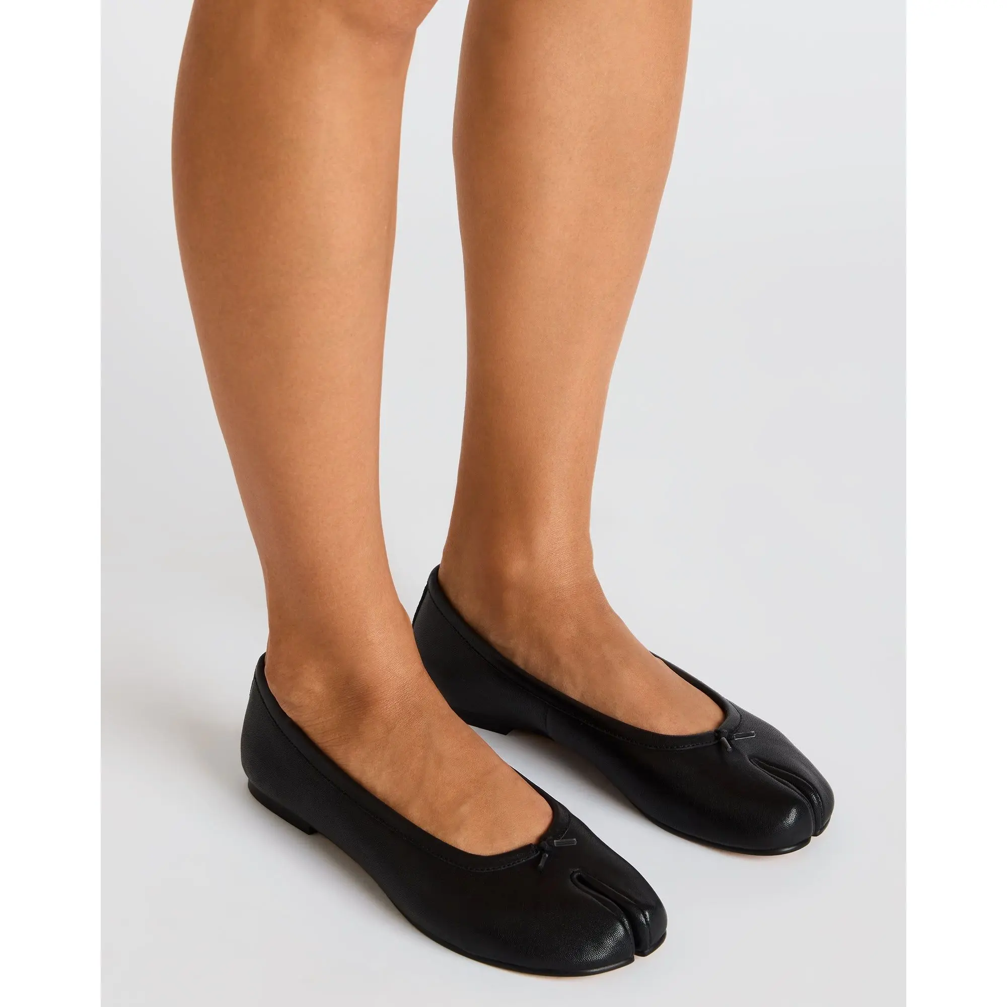 The CALICO BLACK LEATHER tabi split toe ballet flat combines traditional design with modern craftsmanship. Crafted from premium materials, this flat features a distinctive split toe for enhanced flexibility and a unique silhouette. Its sleek profile and comfortable fit make it an expert choice for those seeking both style and innovative footwear technology. Ideal for everyday wear or refined occasions, it offers a subtle yet striking statement.