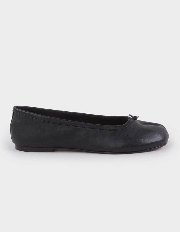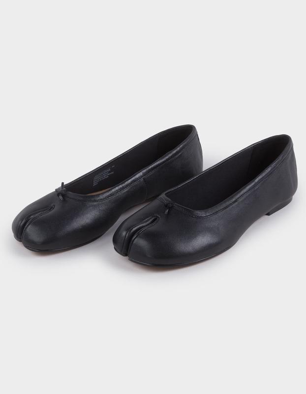 Steve Madden Calico Tabi Split Toe Ballet Flats. The Calico Tabi split toe ballet flat combines traditional design with modern craftsmanship. Crafted from premium materials, this flat features a distinctive split toe for enhanced flexibility and a unique silhouette. Its sleek profile and comfortable fit make it an expert choice for those seeking both style and innovative footwear technology. Ideal for everyday wear or refined occasions, it offers a subtle yet striking statement. 0.25in heel height. Leather upper material. Textile lining. Synthetic sock and sole. Imported.