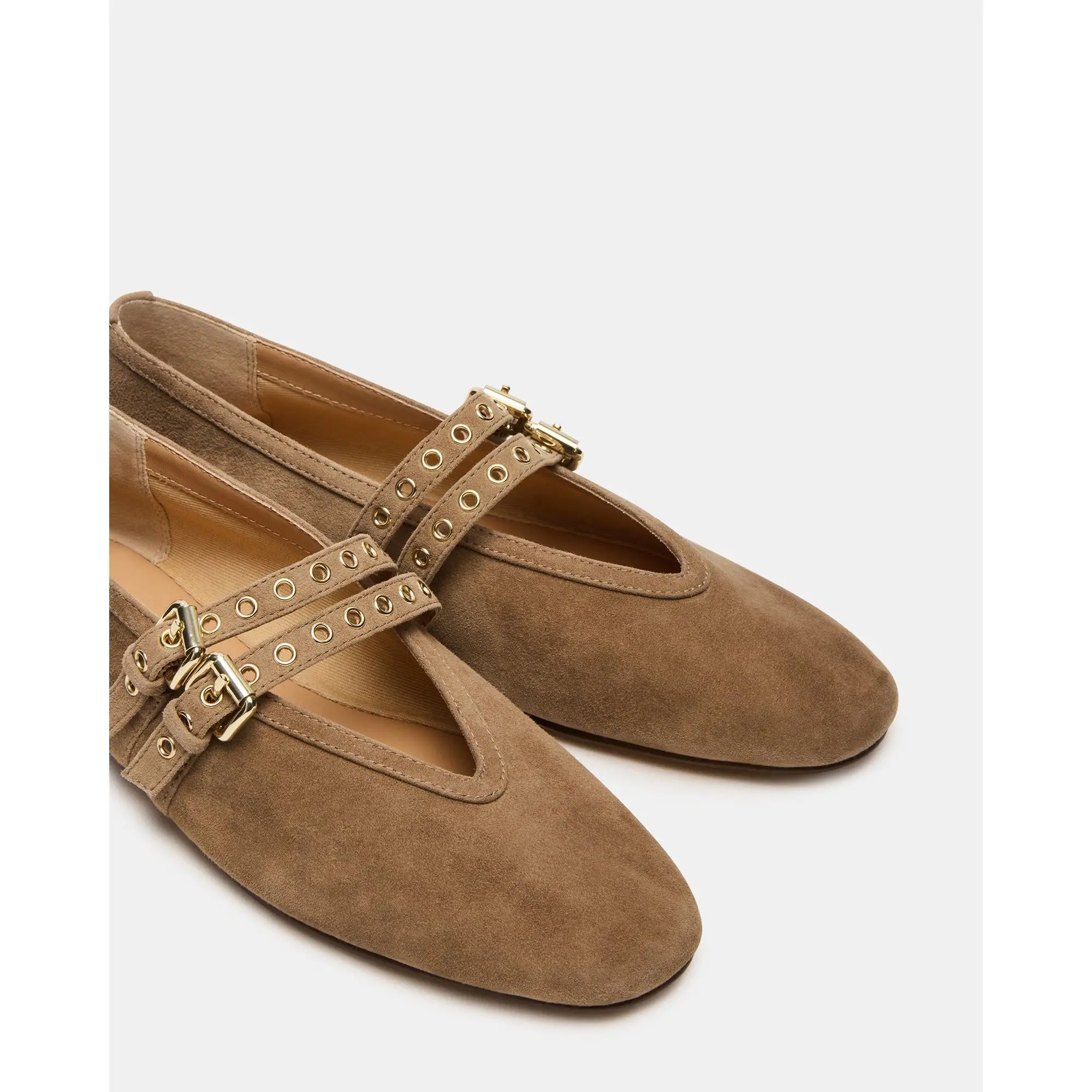 These ballets flats are so comfortable. They look luxurious with double buckle and genuine suede. #balletflat #balletflatshoes #suedeshoes #flatshoes