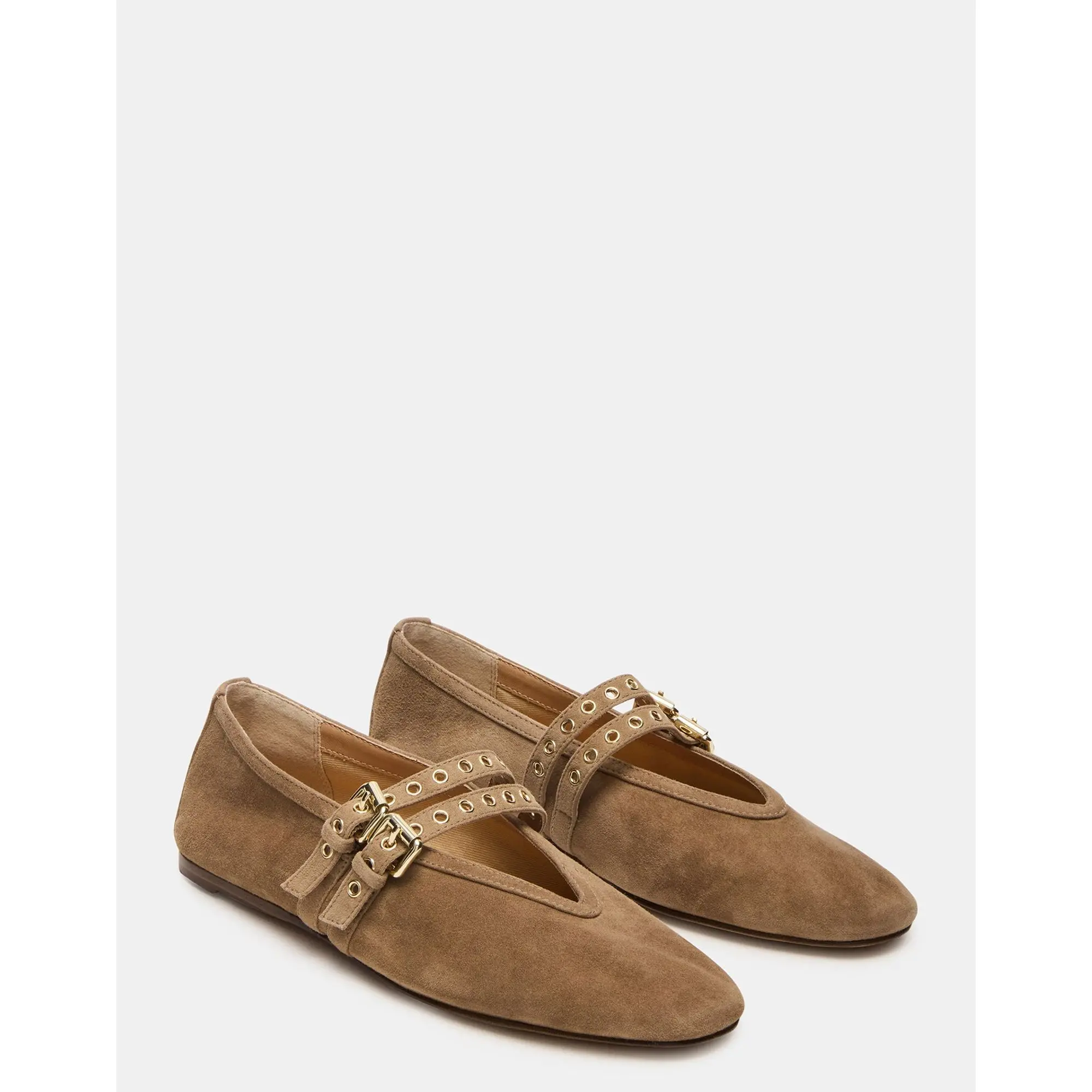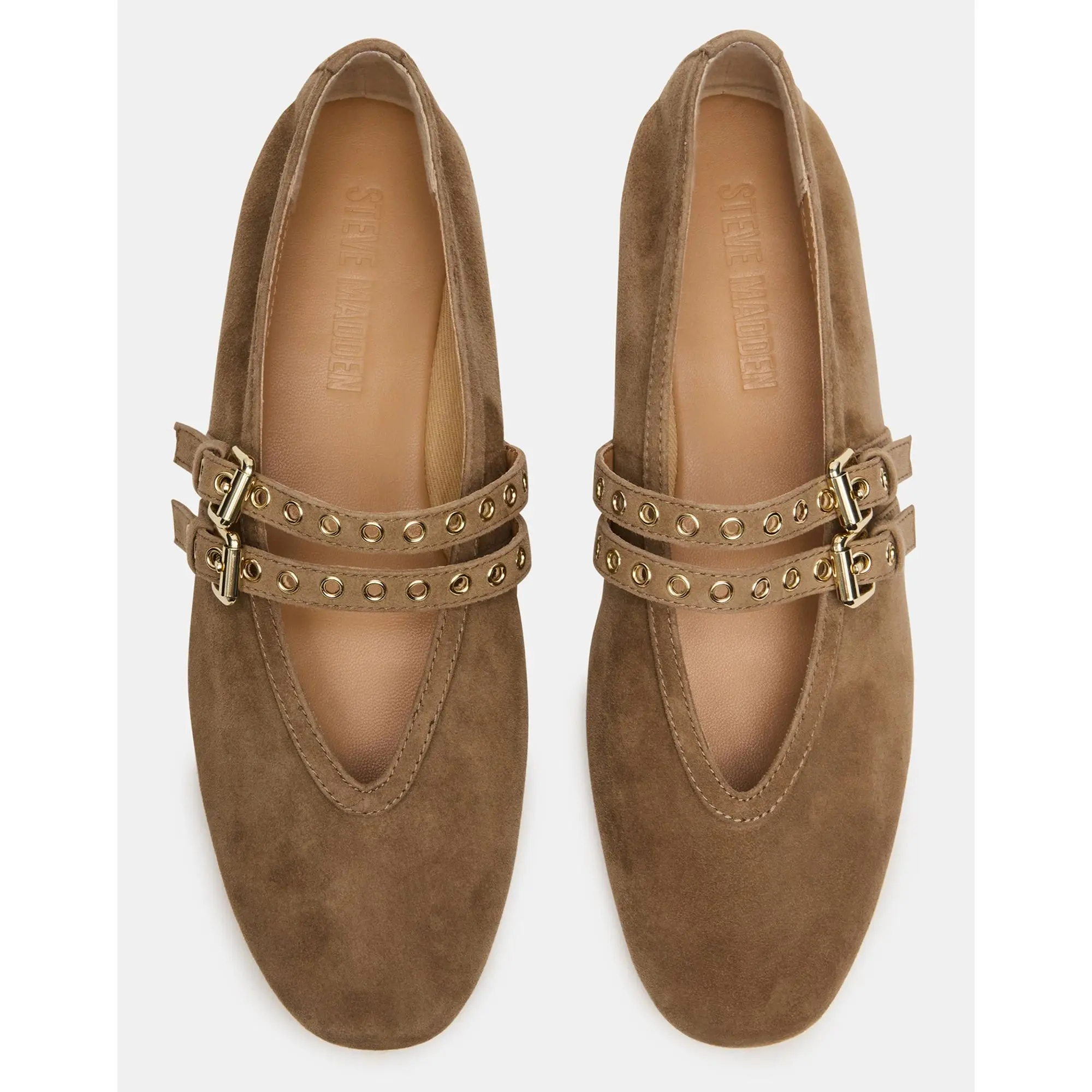 Steve Madden LYDIA TAUPE SUEDE shoe. #SuedeShoe #SteveMaddenShoe #MariJanineShoe #BallerinaShoe. @stevemadden