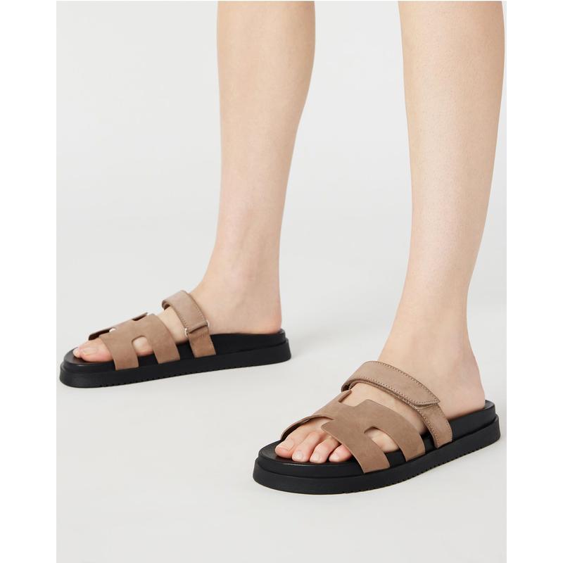 @stevemadden MAYVEN TAN NUBUCK Sandals perfect when you want to look elevated but casual at the same time! #stevemadden #stevemaddenshoes #stevemaddensandals #sandals #trendyshoes #slides
