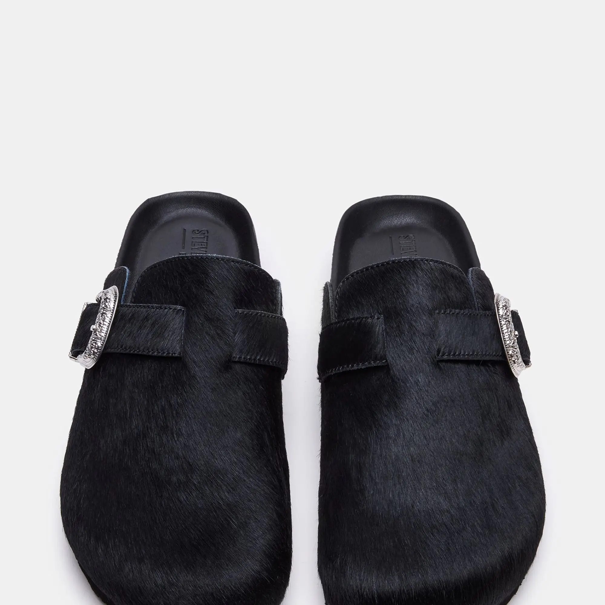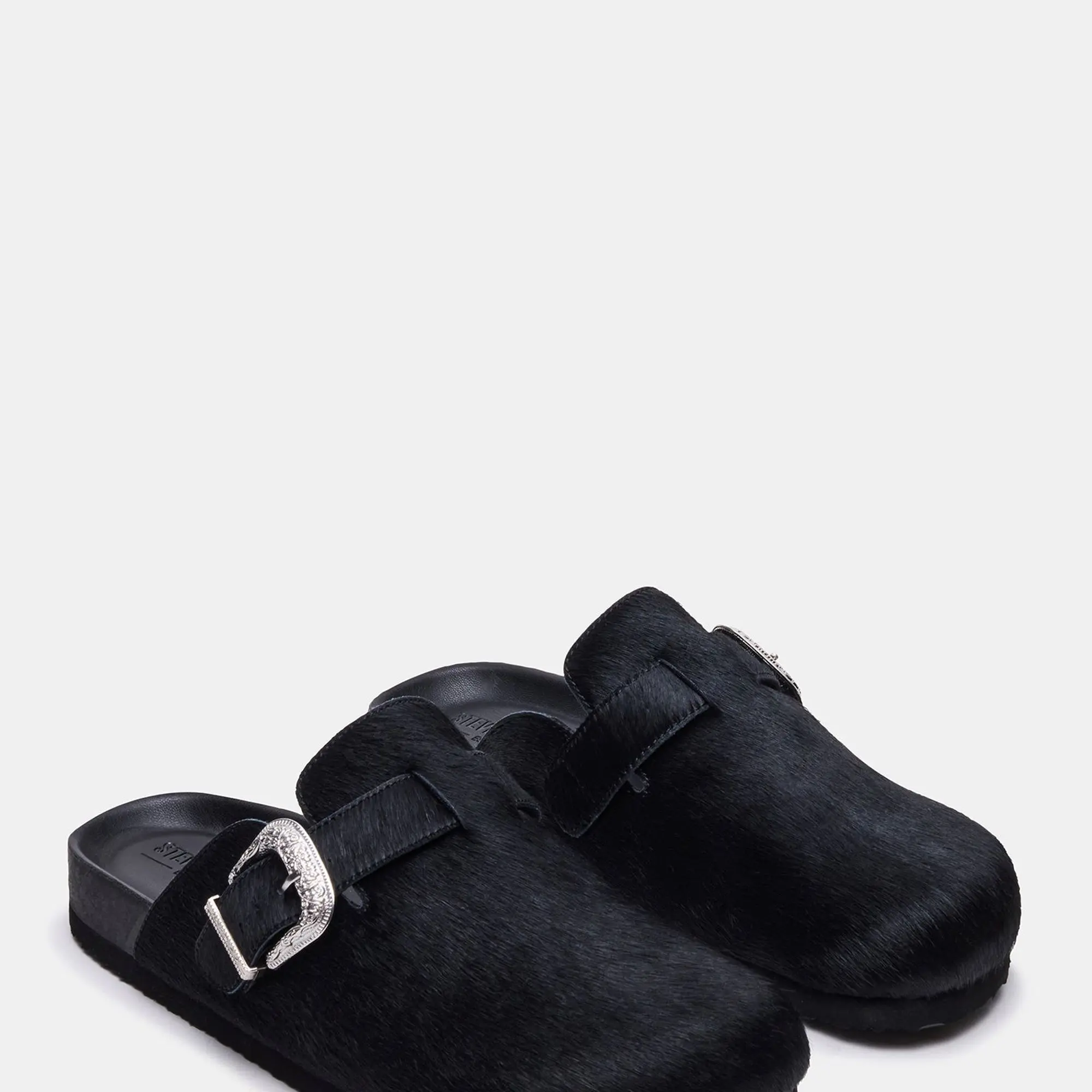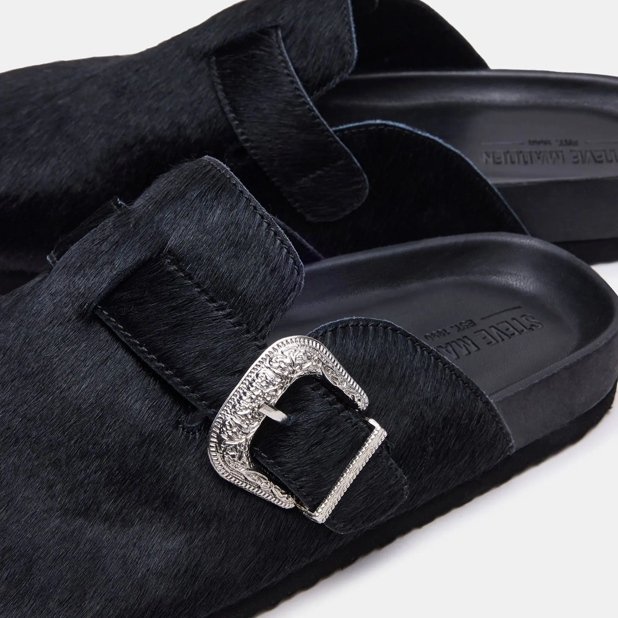 Steve Madden WOOLY ‘ Black ‘ Designer Pony Hair Clog Sandal Slide Mule Shoe Luxury Footwear Clogs Sandals Slides Mules StreetStyle Footwear Jordan Collector Sneakerheads #sneakerhead #streetwear #shoes #sneakers #fashion