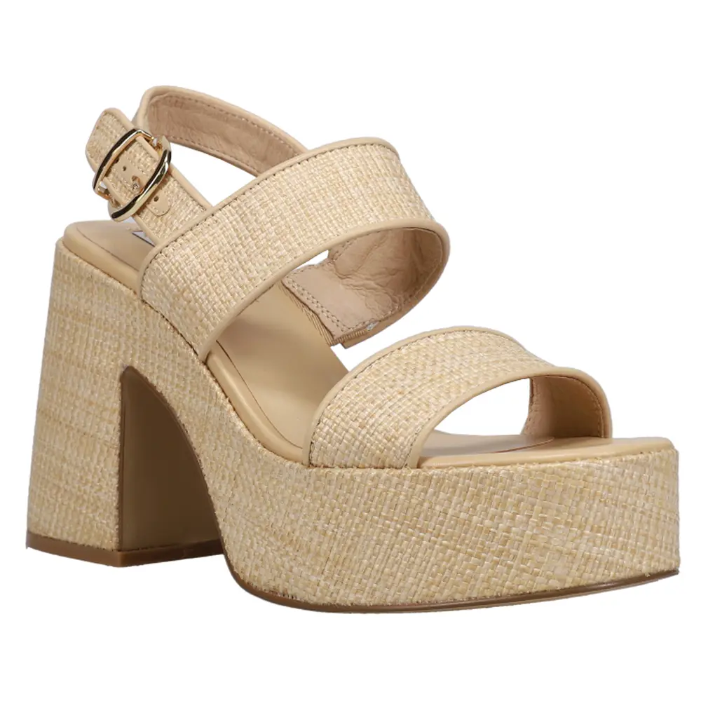 5. Steve Madden Womens Valory Slingback Platform Block Casual Sandals Casual High Heel 3" & Up - Beige