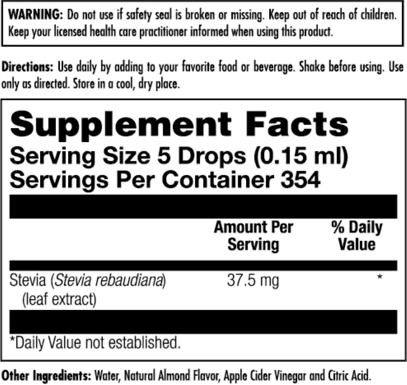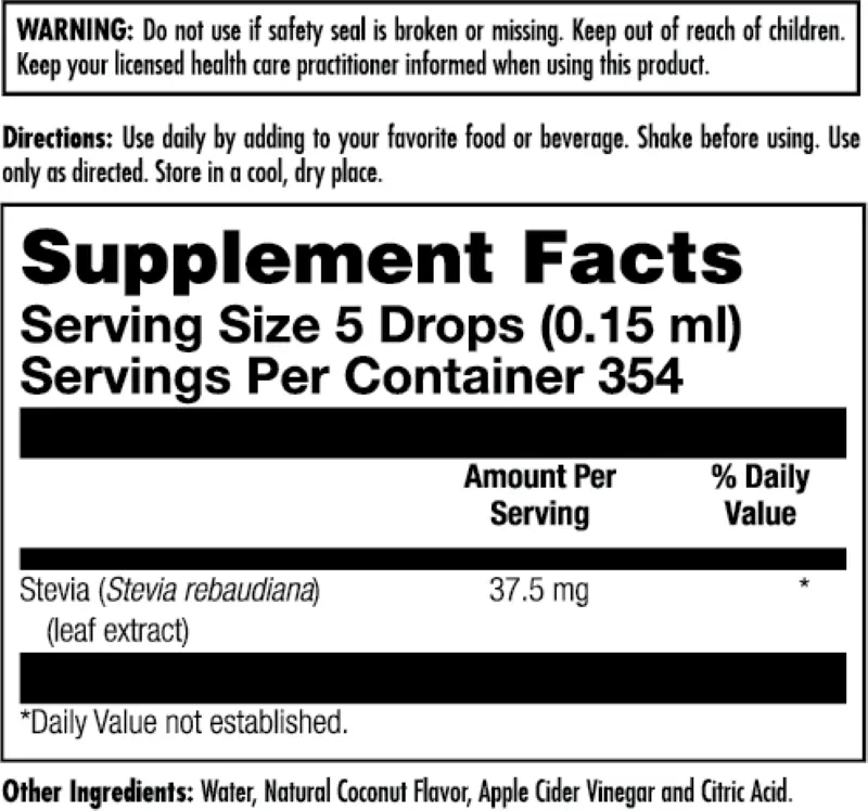 SURE STEVIA LIQUID EXTRACT. 5 DROPS PER SERVING