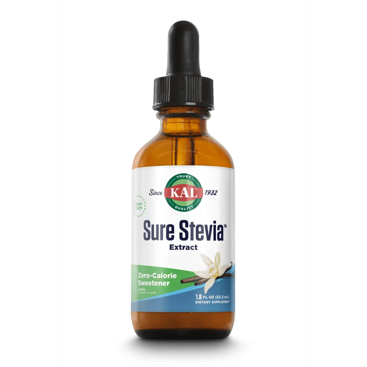 Great flavor and zero calories in one low-glycemic, plant-based sweetener – KAL Sure Stevia Liquid Extract gives you all the sweetness you crave without the bitter taste or the empty calories. We searched the world over to find the best-tasting stevia, then added a natural flavor to enhance all your favorite foods and drinks.