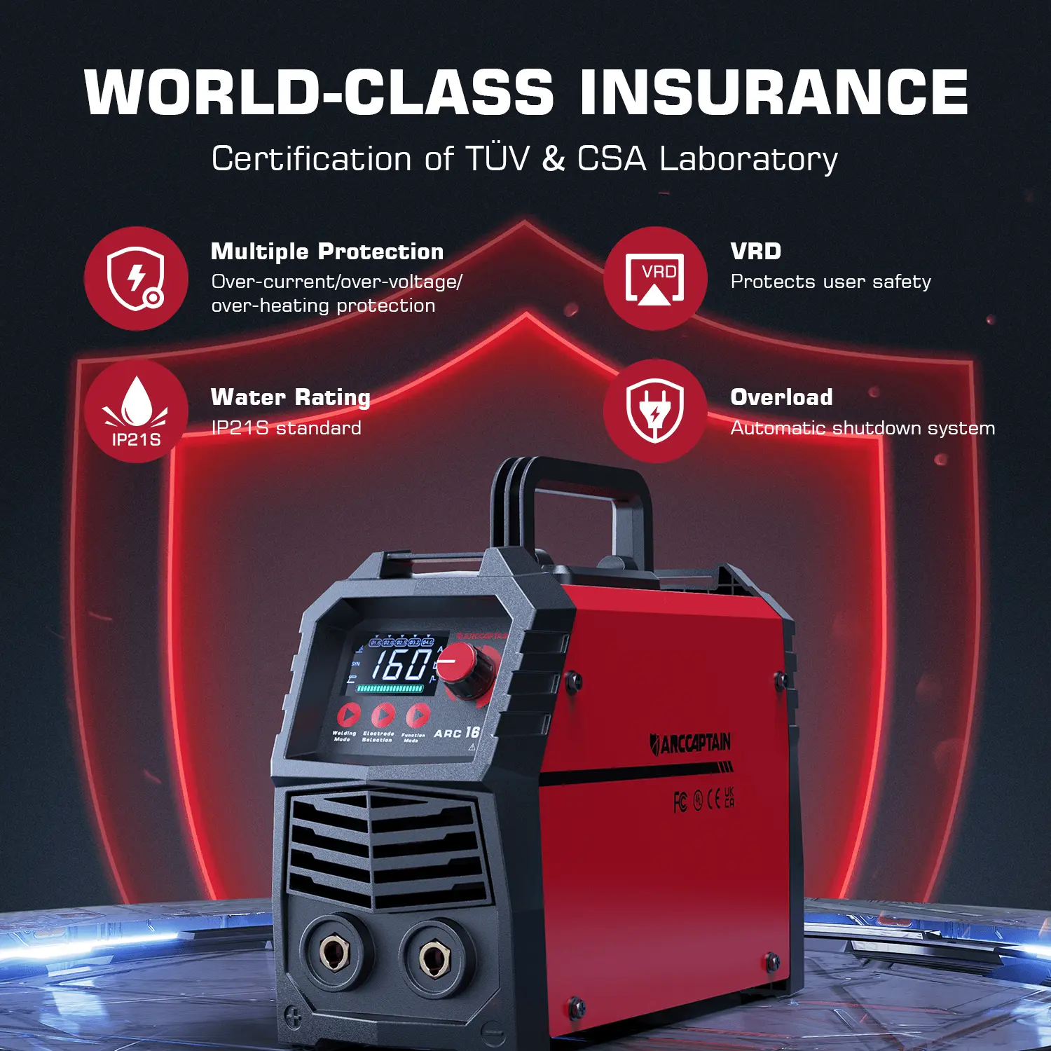 ARCCAPTAIN ARC160 is an affordable, portable stick welder that meets the needs of both home DIY beginners and professional welders. It has multiple functions and high-end quality, featuring a compact and powerful design (2 years warranty).