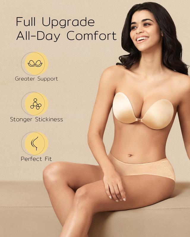 Double-Layer Latex for Unmatched Support & Lift: Niidor strapless bra features an innovative dual-layer latex design that creates a deep V curve. Its high-strength adhesive and reinforced structure offer 2X the lift of standard sticky bras, ensuring a confident, all-day hold without wires or straps.