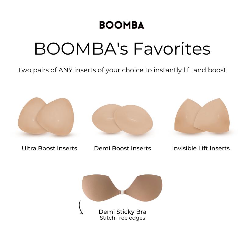5. BOOMBA Favorite Bundle - Patented Sticky Fashion Bra Inserts - Pack of 3
