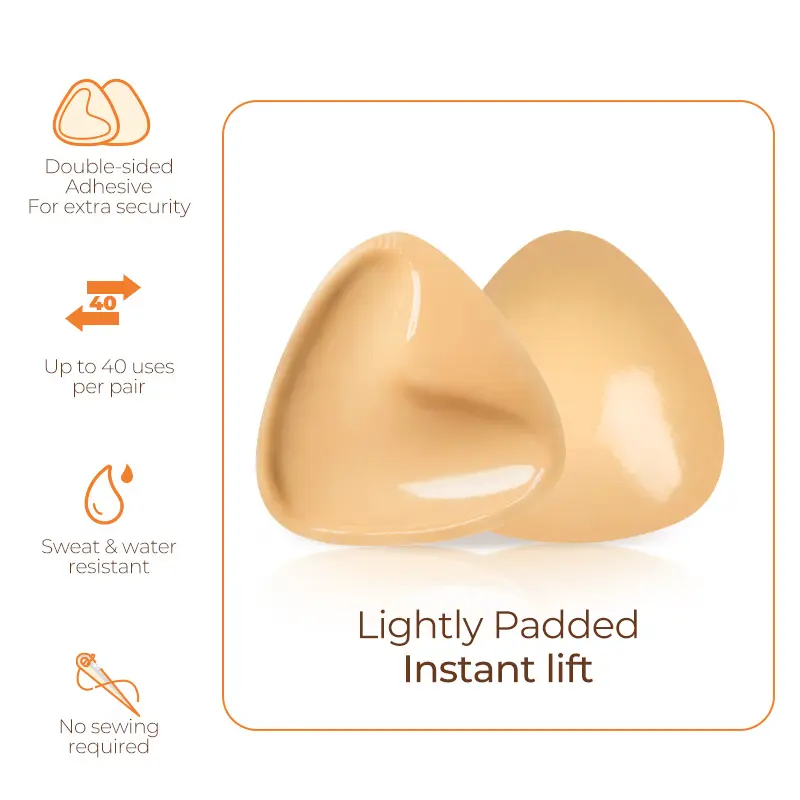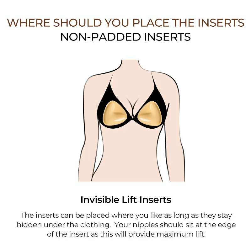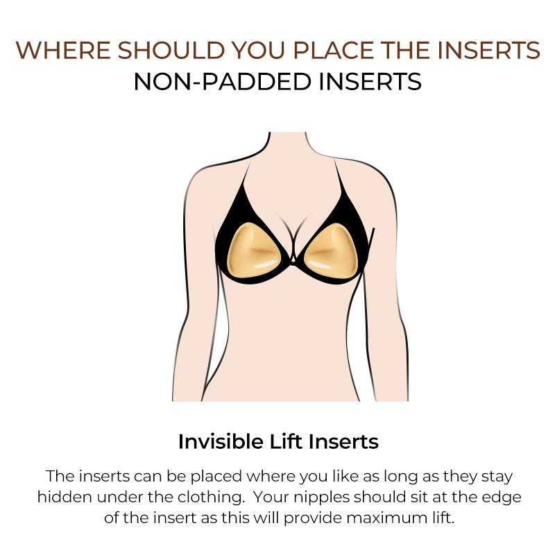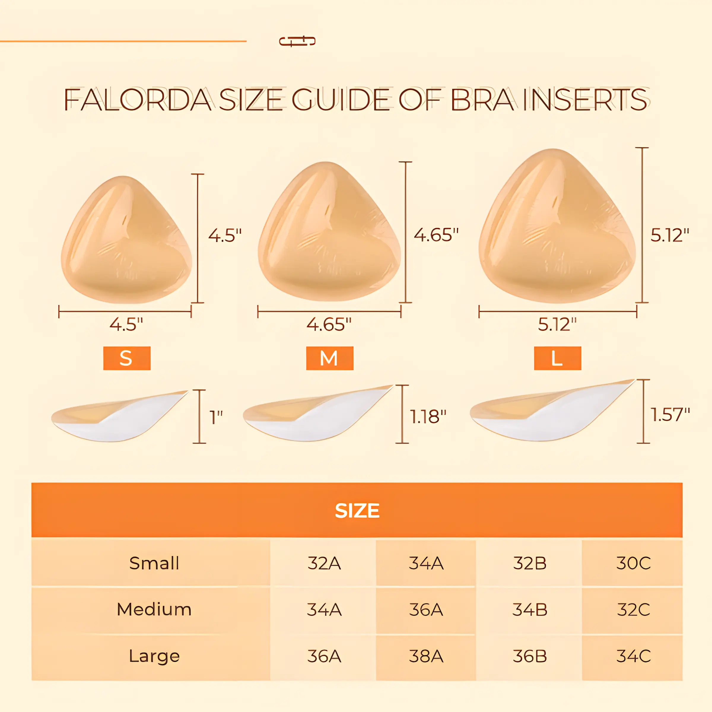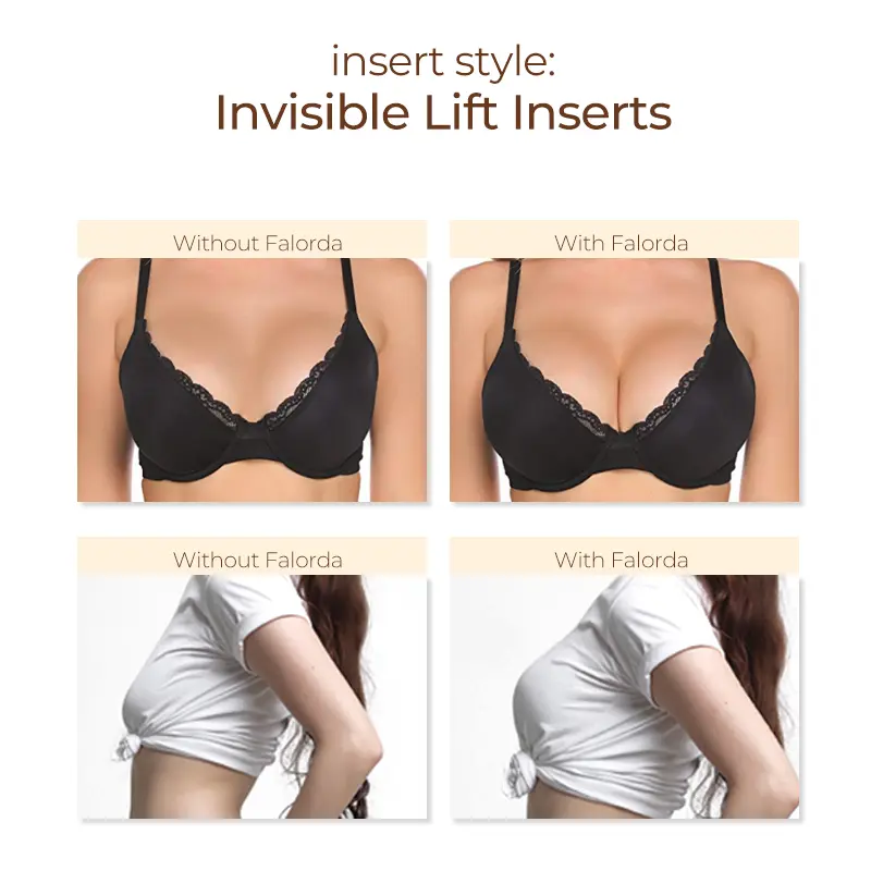 PLEASE NOTE: Unlike a sticky bra that is supported by the adhesive, FALORDA inserts are supported by the clothing and cannot stay up by themselves. It is crucial to wear them in tight, structured, and fitted tops