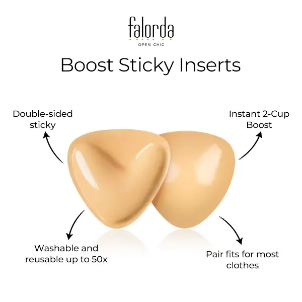 5. Falorda sticky inserts, Minimalist, Instant 2-Cup Boost,Underwear, Comfort,Push Up Low-cut, Fits for dresses, Bikinis, Tops, Reusable bras