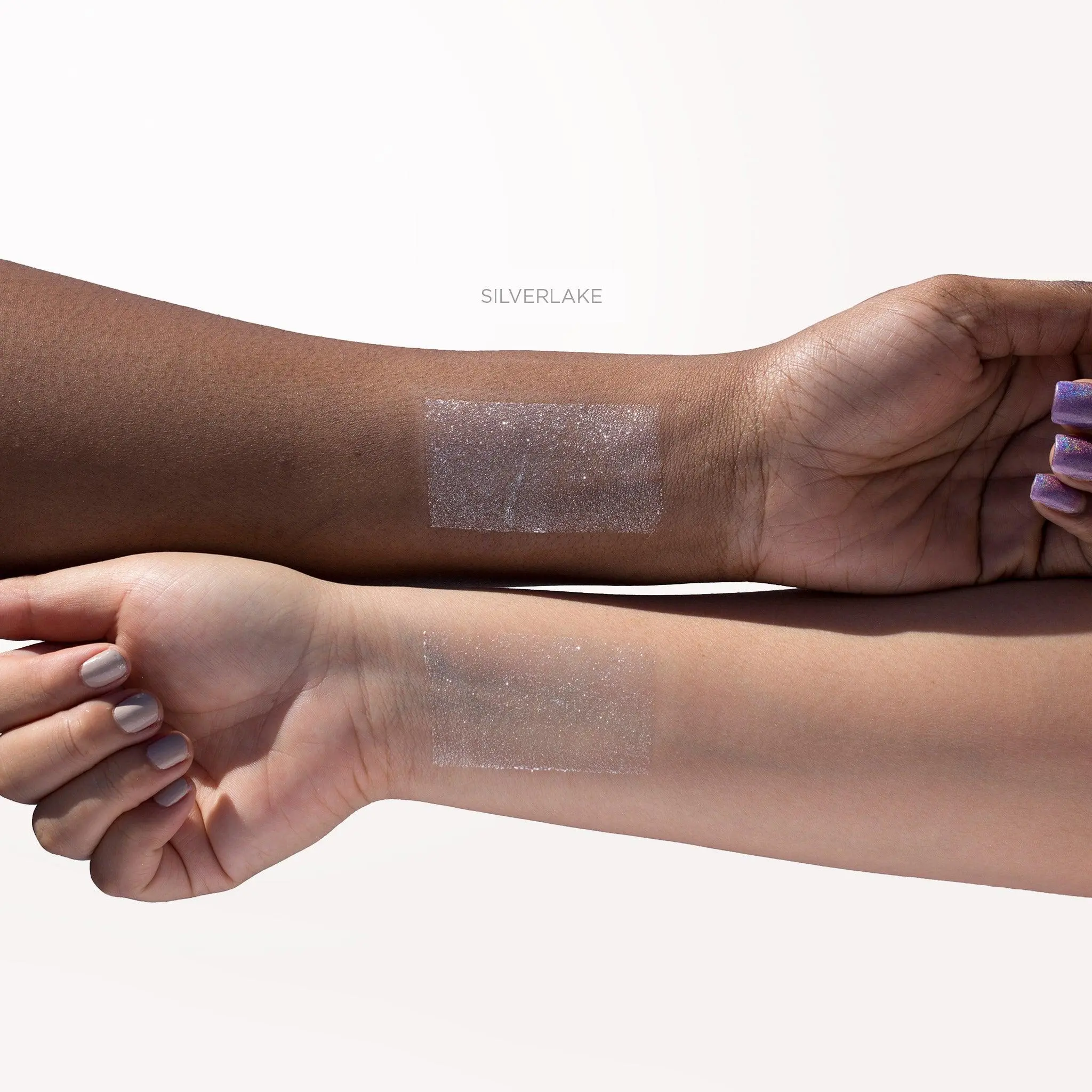 ▪ Translucent base allows light to illuminate the suspended pearlescent shimmers and micro-fine glitters to leave a brilliant, hyper-lustrous look, with a barely-there feel on skin.