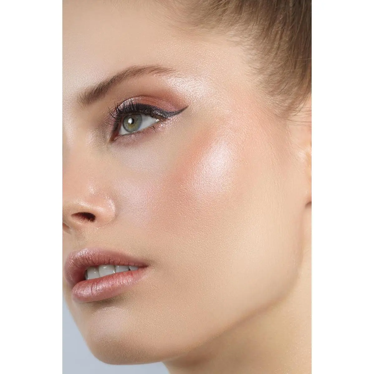 I love this highlight. It can be shimmery or wet looking depending on how you apply it, and it doesn’t leave any cast behind. Just a beautiful bit of shine to any look. I have it applied on my nose in this picture for reference.