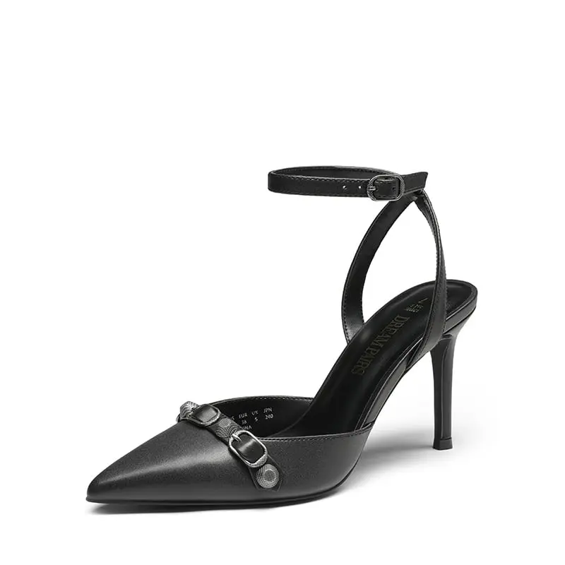 Designed for versatility, these ankle-strap stiletto pumps seamlessly transition from casual outings to upscale events. Immerse yourself in the perfect fusion of trendsetting style and make a statement in these pumps.