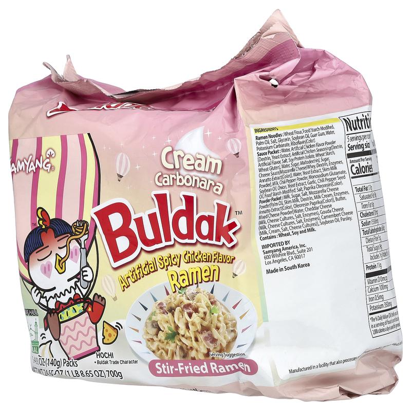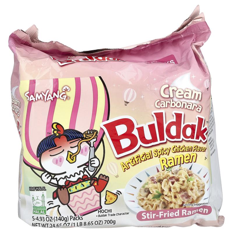 5. Buldak™, Stir-Fried Ramen, Spicy Chicken, Cream Carbonara, 5 Packs, 4.93 oz (140 g) Each