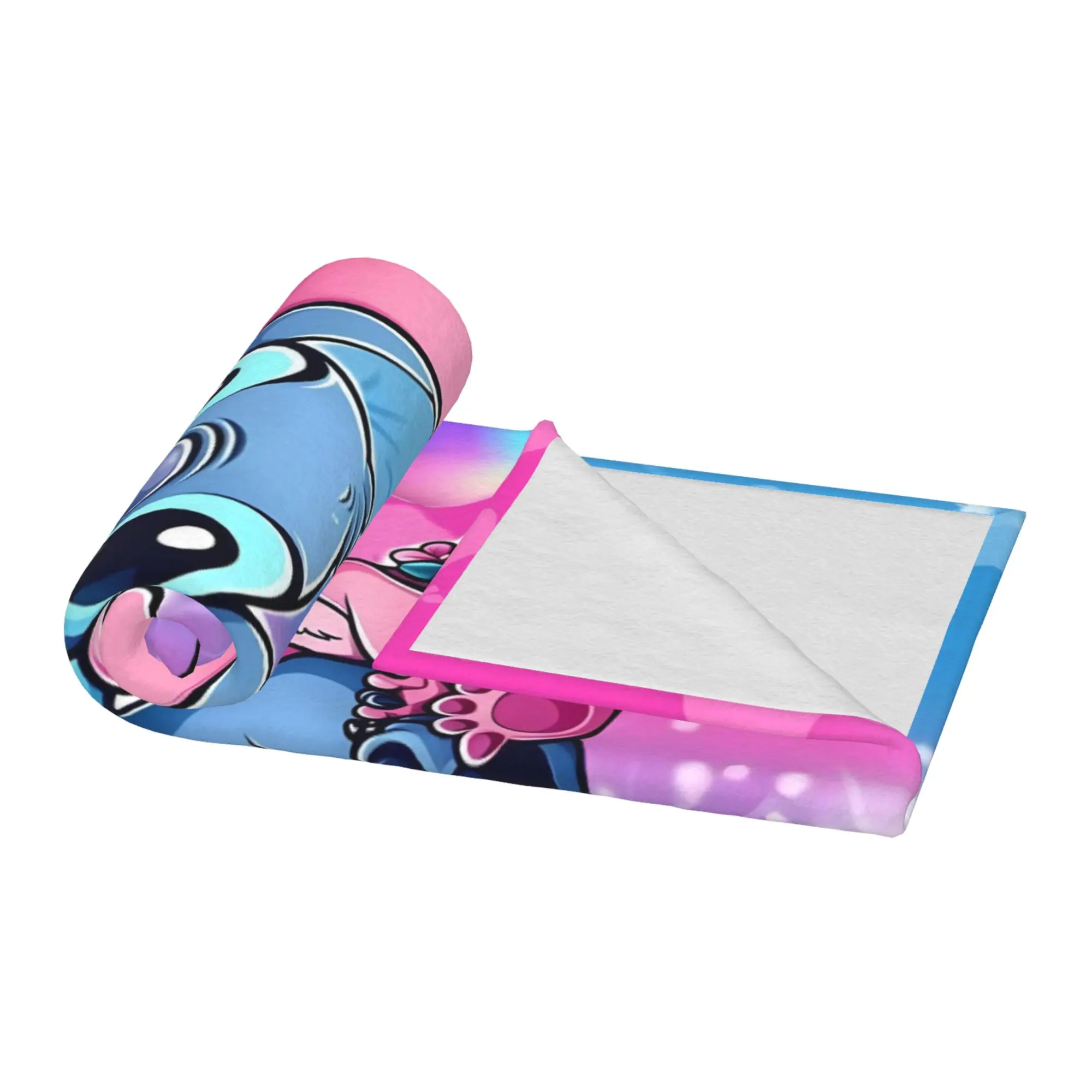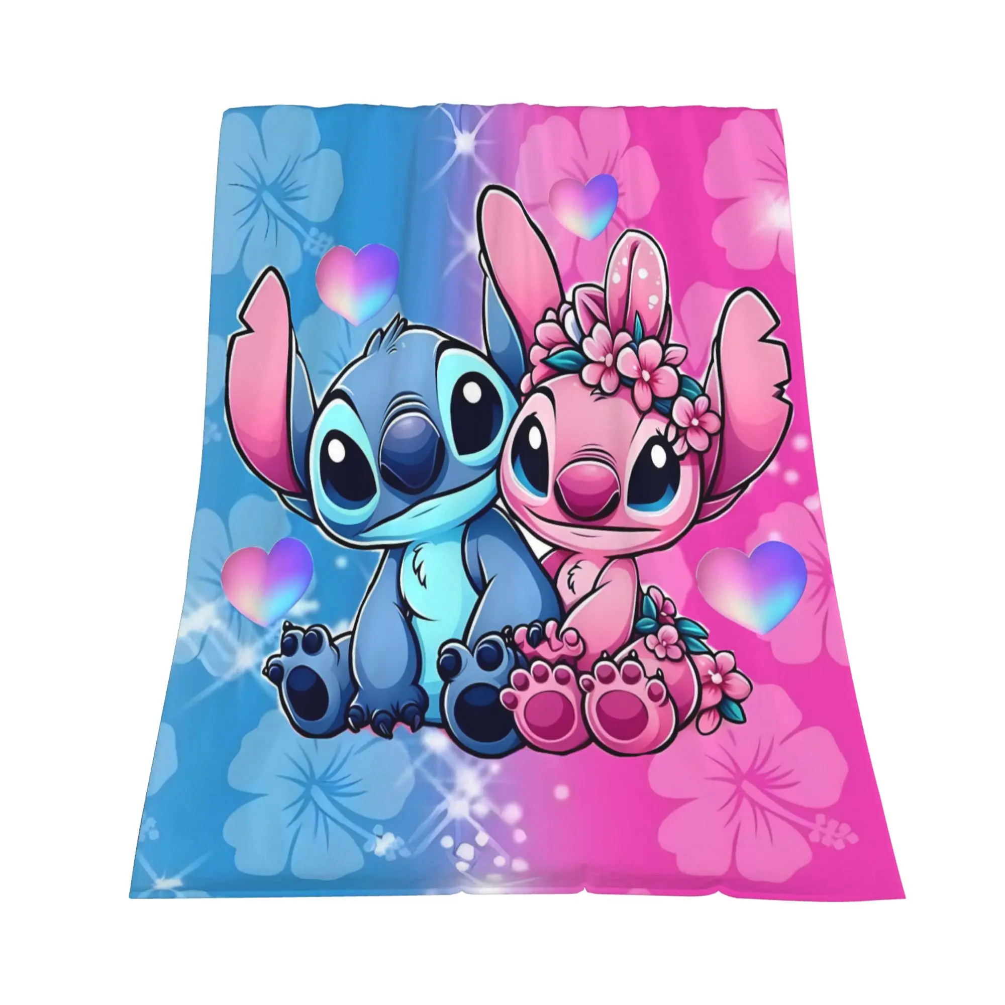 DISNEY CLASSIC Stitch & Angel Flannel Blanket - Soft, Warm, Lightweight with Vibrant Cartoon Design, Sofa, Bed, Office, Blanket for Couch