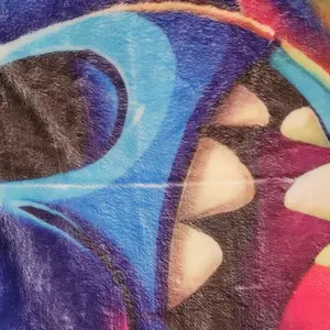 I was very disappointed when I received this blanket.. It was a defective blanket.. There are white lines going across the blanket.. It was packaged very poorly.. it was just balled up & thrown in the shipping package..Wasn't neatly folded at all.. Its a Christmas gift for my neice who loves stitch & I am embarrassed to give this to her..Material is soft but thin.. Highly highly disappointed!!!