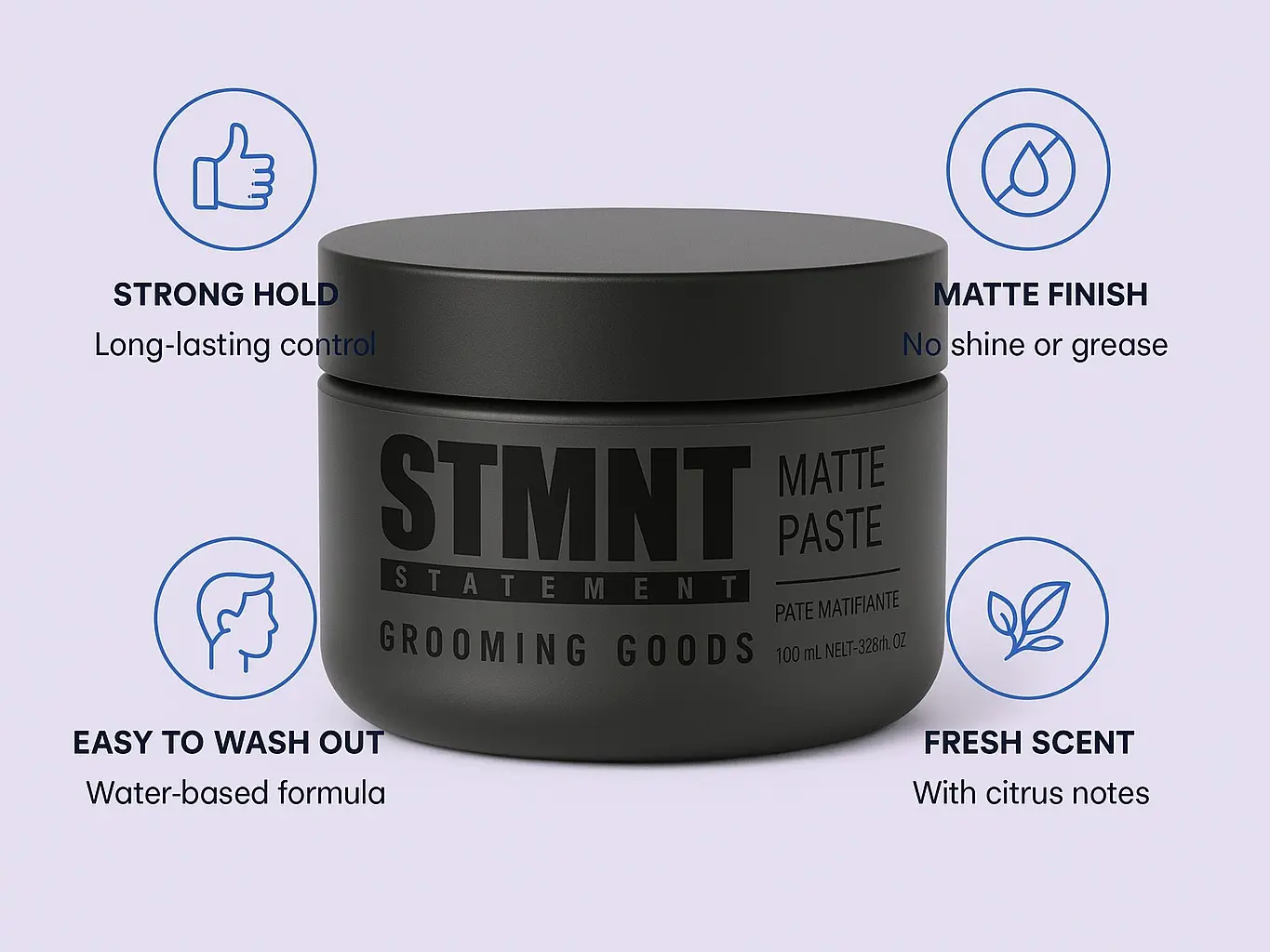 My hair easily gets dry and is somewhat thin. I tried a couple of styling products, but they all made my hair super dry. STMNT Matte Paste hasn't dried out my hair at all! I really like the texture and volume it gives me.
