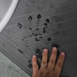 Cracked after standing on it collectively less than 20 second, after two showers. I inspected the product when it came, no cracks. Didn’t wipe it before use and after my first shower, I could still see water marks hours later. Wiping with water evened it out. After my second shower, saw this crack.