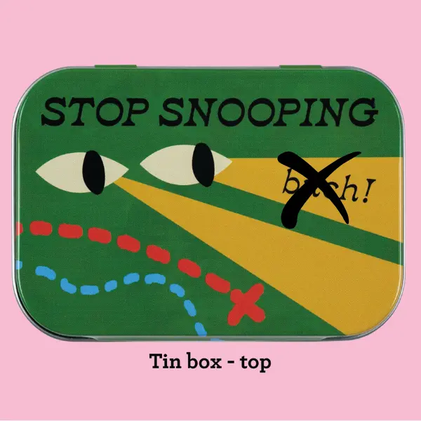 Stop Snooping B**tch Stash Retro Tin Box - Stash Your Stuff with Fun Eyes and Bold Text Design Organiser