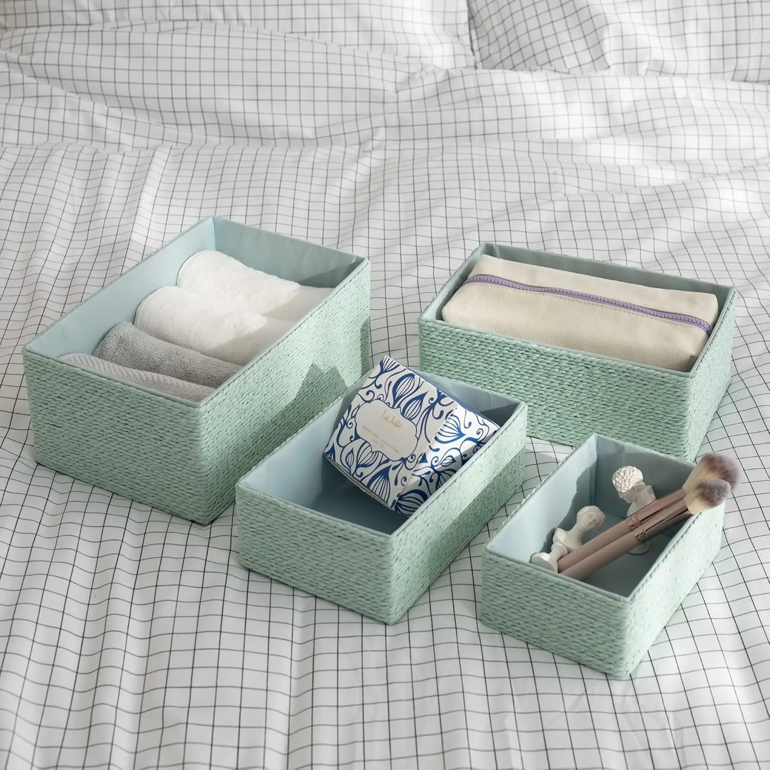 Versatile for Sorting - Basket set of 4 to organize odds and ends. Can be pced in living room, bedroom, bathroom, pantry or even work pce, and fit in closet or luggage box for trips