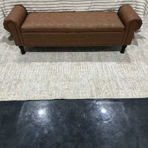 This versatile bench offers a rolled arm design and vintage rivet decoration. It measures 50.7" * 17.1" * 19.5" inches, perfect for full/queen-sized beds. Place it at the end of the bed for 12 gallons (50L) of storage. Ideal for blankets, pillows, seasonal clothes, and books.