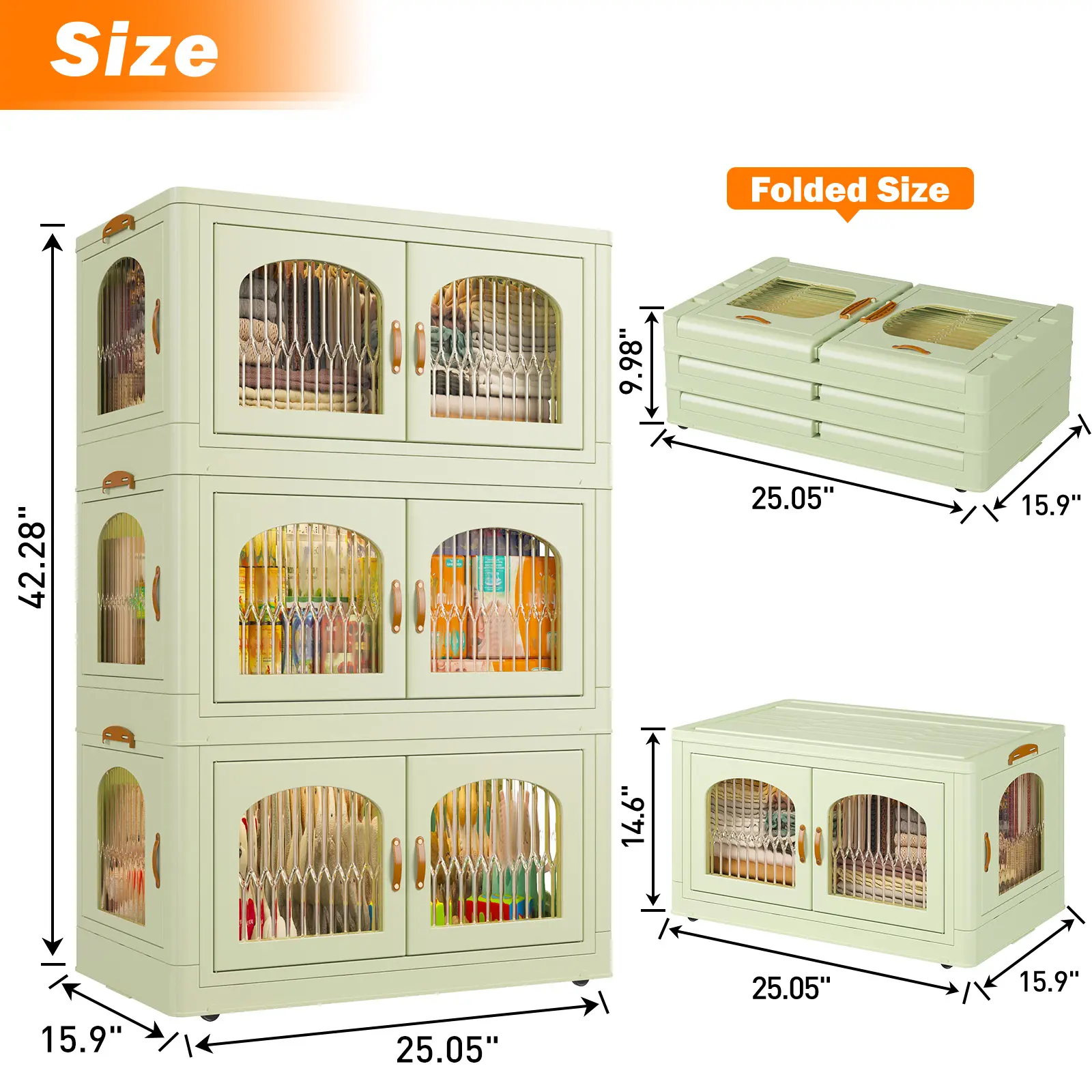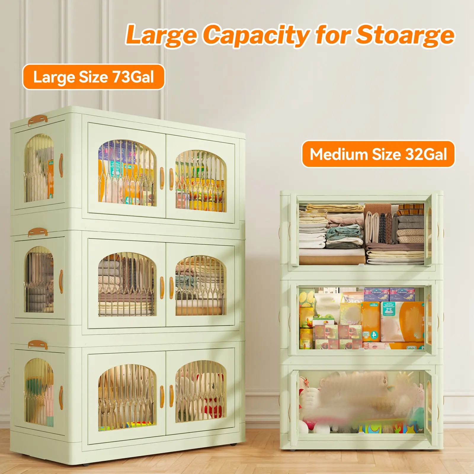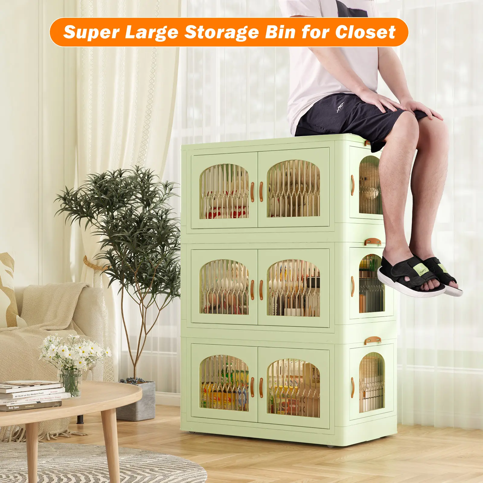 ·【Magnetic Door】 The side of the plastic storage bin for clothes are very convenient to use. The front and side doors can open 100 degrees, allowing you to place and take out clothes from different angles.