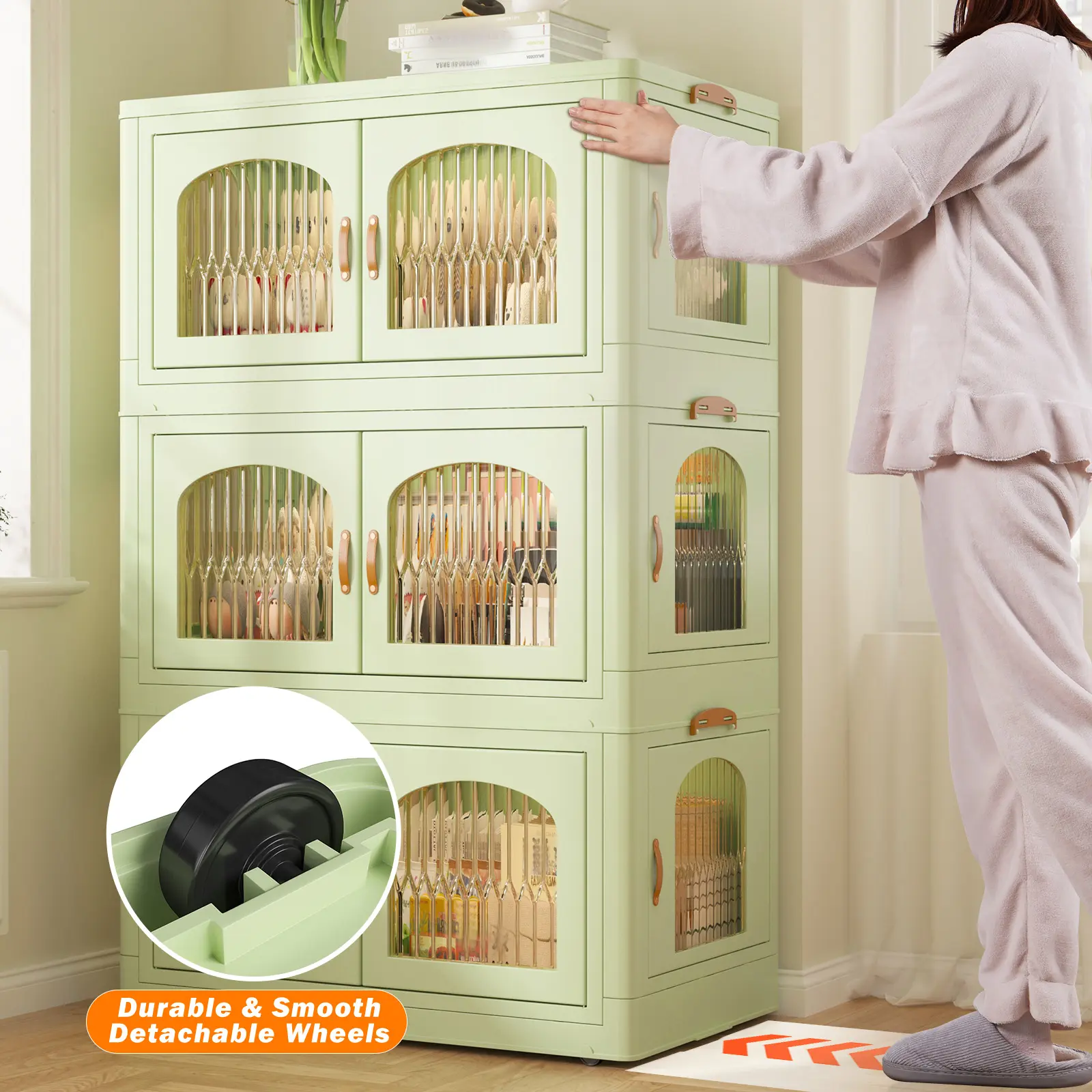 ·【Stackable & Collapsible & Side Handles & Detachable Wheels】Foldable storage bin saves a lot of room space, and you can use it alone, stack three boxes, or even stack more.