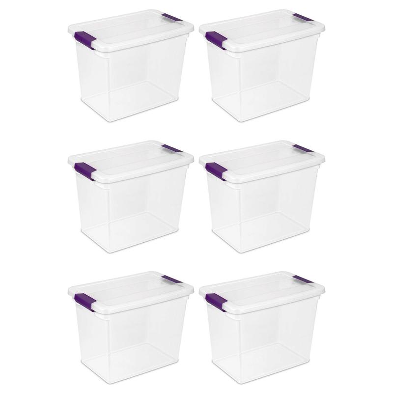 Organize your closet, office, craft supplies, or kid's playroom, putting everything in its proper place with the help of the 6-Pack of Sterilite ClearView 27-Quart Plastic Stacking Storage Totes with Latch Lids.