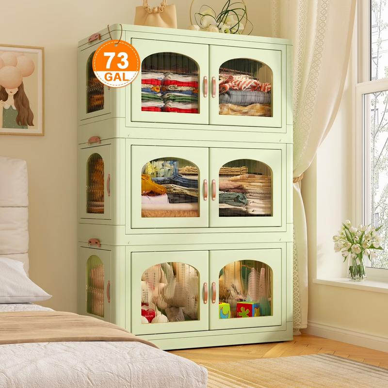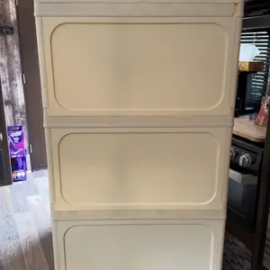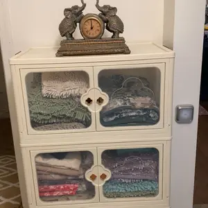 I love the stackable storage organizer. I would definitely recommend this product. The five tier was unavailable, so I had to get the three tier, an additional tier added. It holds quite a bit of towels and bath rugs. The magnetic doors are wonderful, easy to assemble.