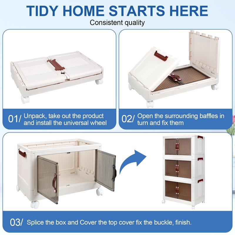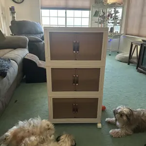 Nothing like it is described in the videos. It's small. It is basically foldable crates with doors. It is easy to assemble. But I'd never spend $50 on this ever again.