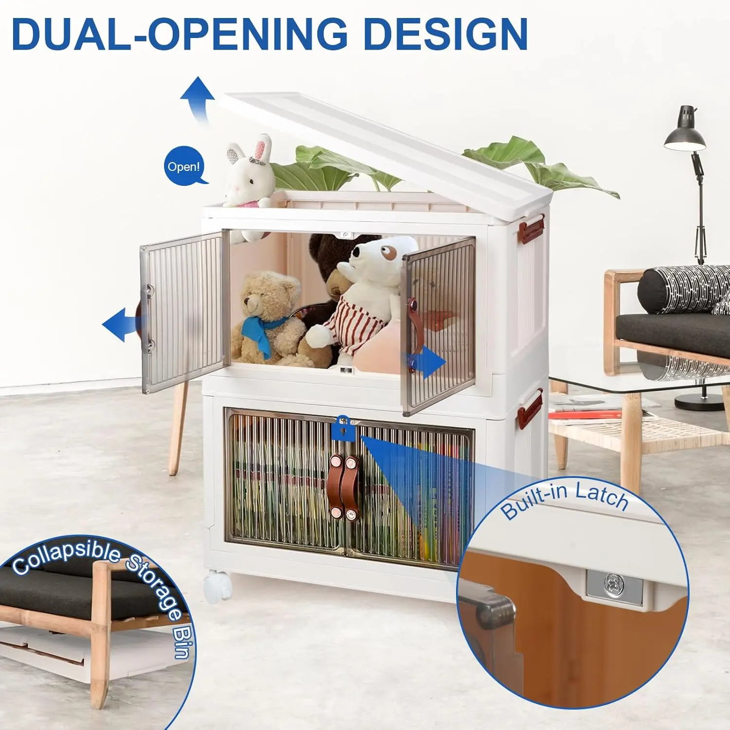 ·【Two Opening Ways】The folding bins are able to open in two ways. You can open the lid on the top of the collapsible storage box or open it from the front door. The front door's built-in lock buckles, ensure the doors don't just come open on their own. The front door of clear storage bins with lids makes it easy to access everything inside without having to pull everything down or remove the things on the top lid. It keeps things from being exposed to dust.