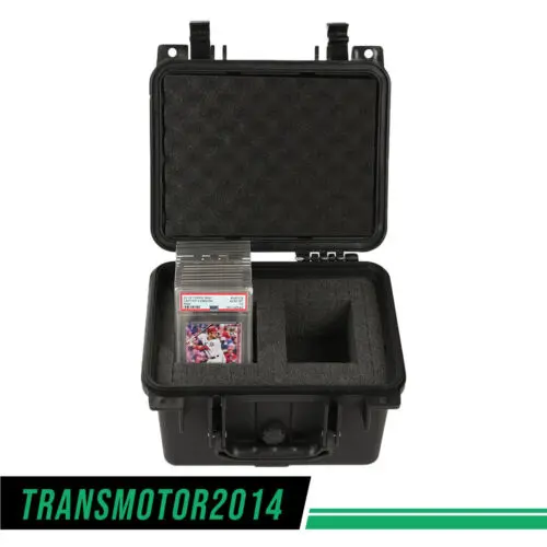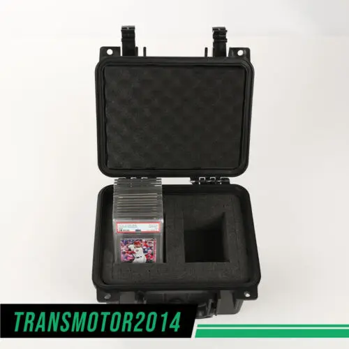 Secure, store, display, and transport your most valued collectibles in style with this professional, heavy-duty, weatherproof storage box travel case. Easily customizable for your professionally graded sports cards from PSA, BGS, BVG, SGC, one-touch magnetic holders, and/or top-loaders, each case is constructed of durable, high-density polymer to provide outstanding strength, maximum shock protection, and weather resistance, and features charcoal-colored "pick and pluck" foam to create perfect, snug, and specialized shapes and custom configurations. Fits 45+ graded cards or 250+ ungraded (varies by configuration and holder style).