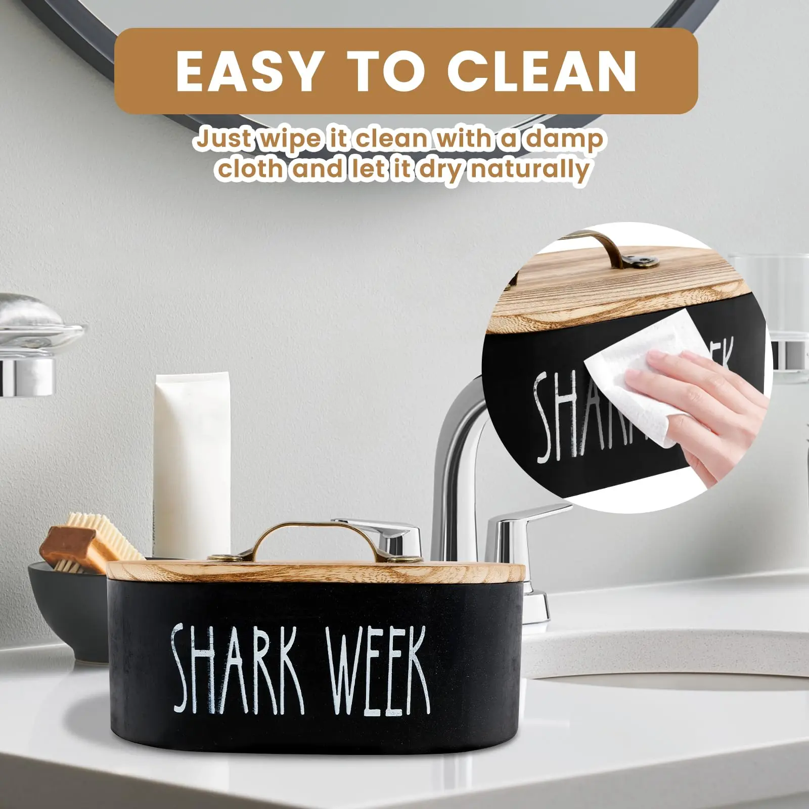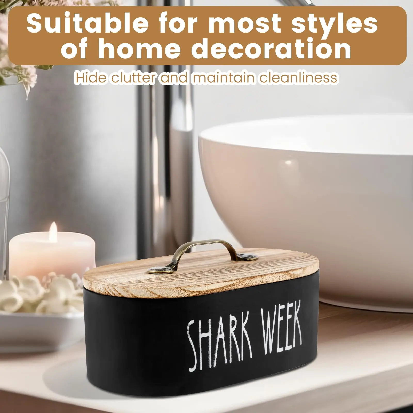 【Decorative Appeal】: With a rustic wooden finish, this basket complements a range of bathroom aesthetics while staying practical.