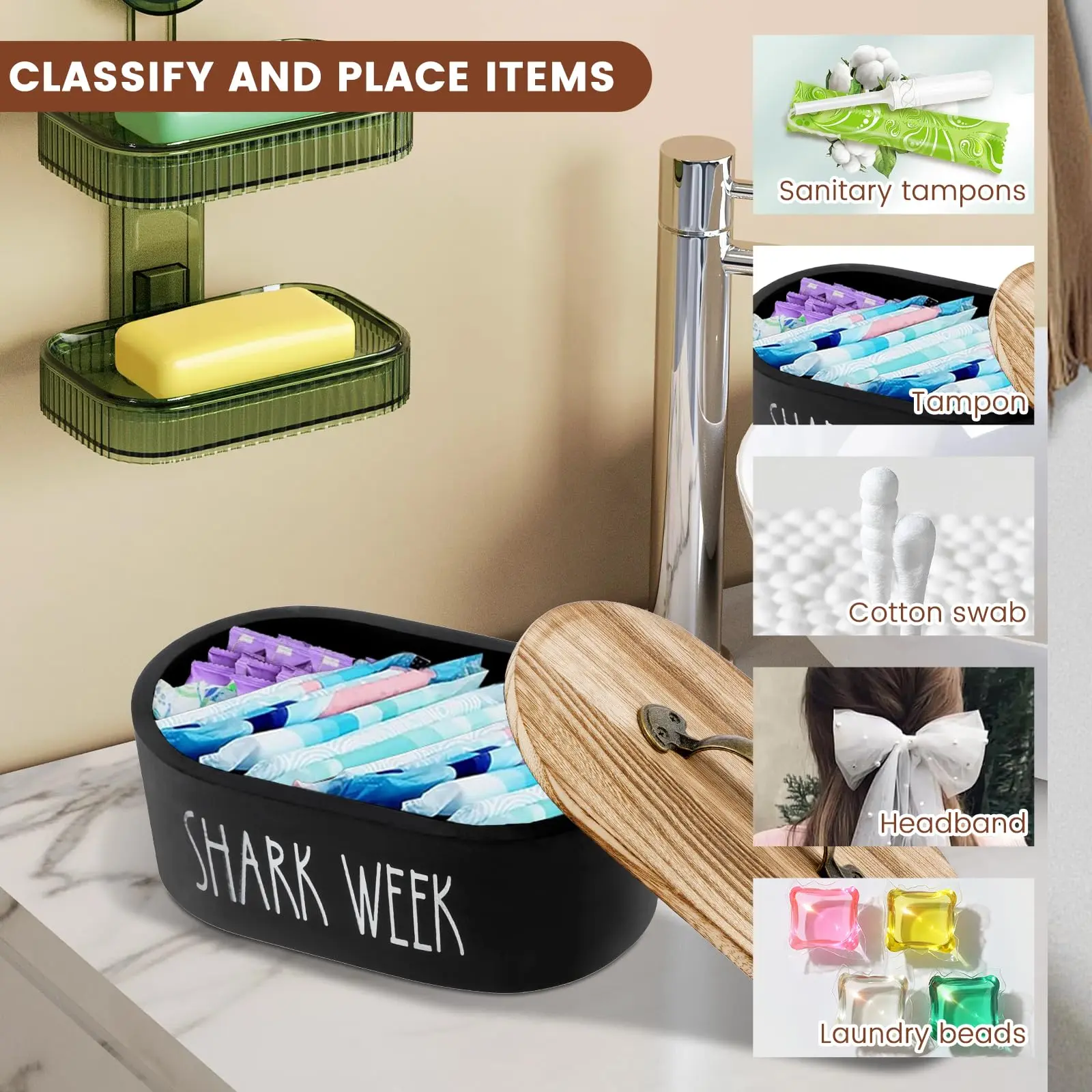 【Multi-Purpose Use】: Capable of storing sanitary napkins, cotton swabs, and more, enhancing organization in your personal care routine.
