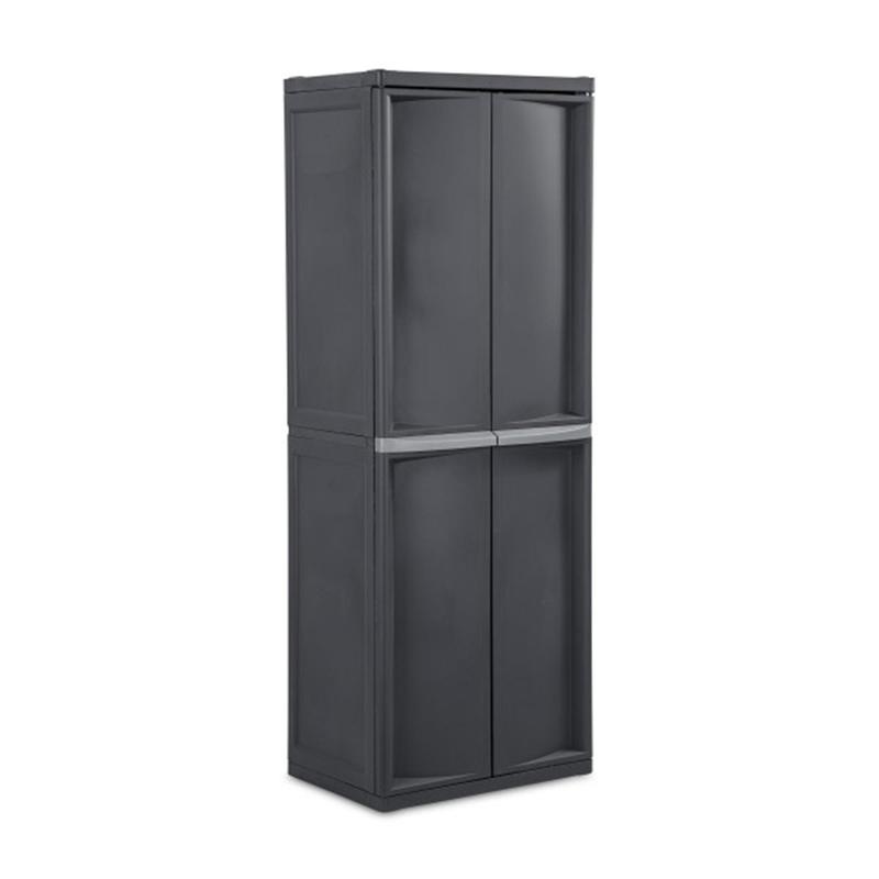 This plastic storage cabinet has 4 adjustable shelves and is large enough to accommodate a plethora of items while keeping them easily within reach. The doors swing in and out easily for easy access and close securely to prevent items from falling out.