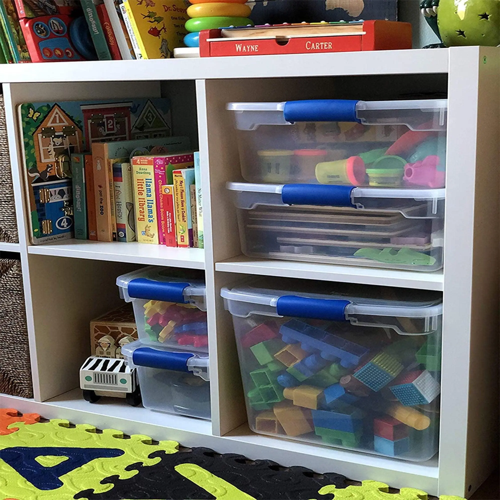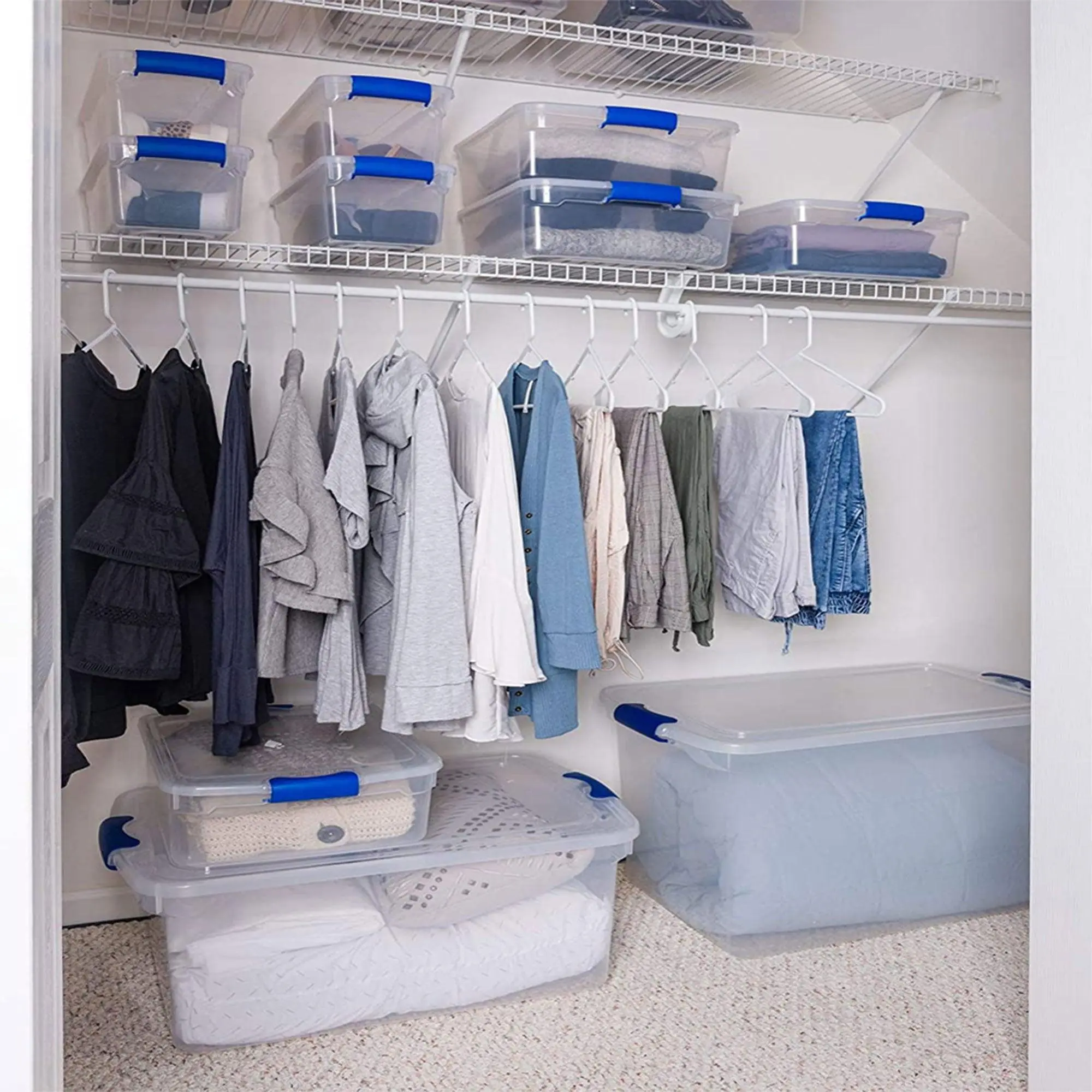 ·Set of (5) 7.5-quart storage bins ideal for organizing clothing, office supplies, personal items, and more